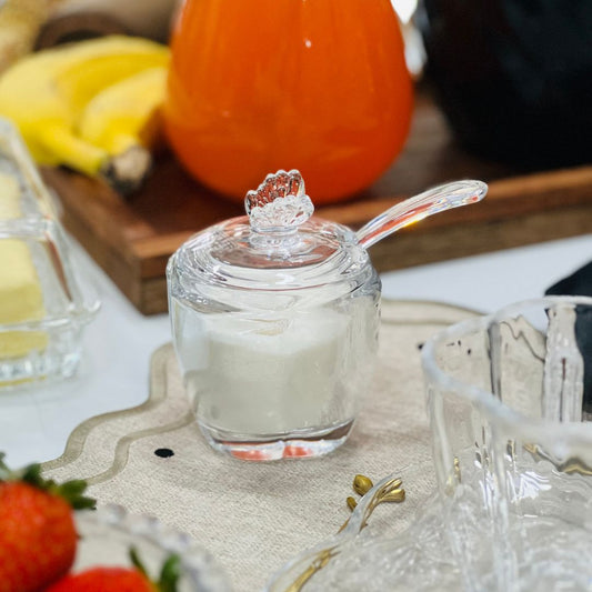 Açucareiro de Vidro Com Colher Butterfly - 8,5x8,5x11cm