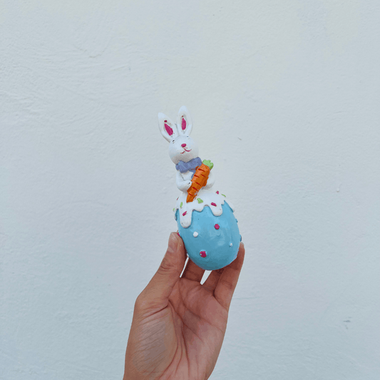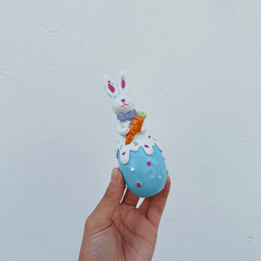 Coelho no Ovo Azul de Resina 12,5x5x4,7cm