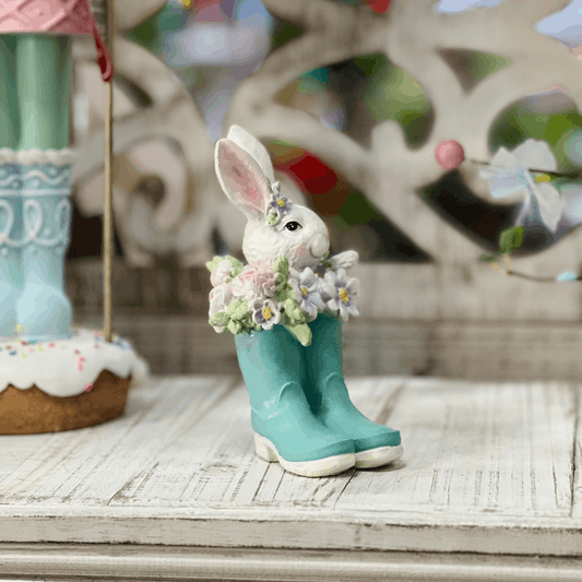 Bota Decorativa Com Flores Azul de Resina 12cm