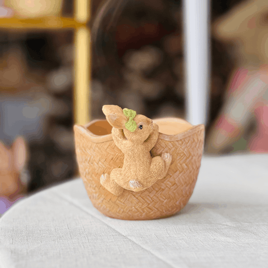 Pote Decorativo Cesto Coelho Chocolate de Resina 16x14x9cm