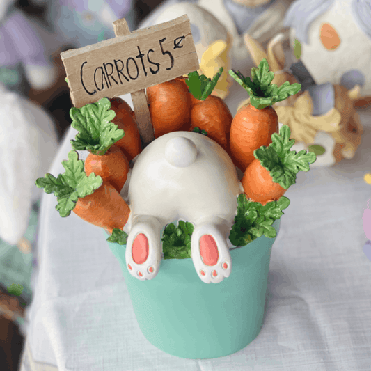 Coelho no Balde de Cenouras Decorativo de Resina 27,5cm