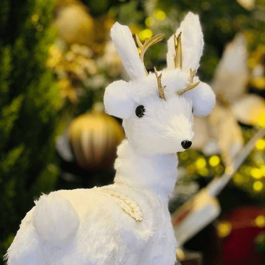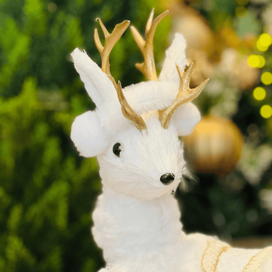 Rena Natalina Sentada Branco e Dourado de Sisal 30x30cm