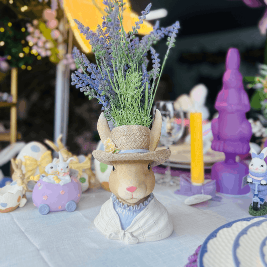 Coelho Com Chapeu Vaso Decorativo de Resina 21cm