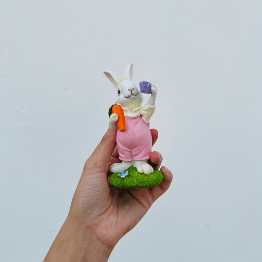 Coelho Com Morango de Cerâmica 12x7,5cm