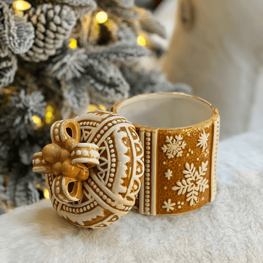 Pote Natalino Presente Gingerbread de Cerâmica 17cm