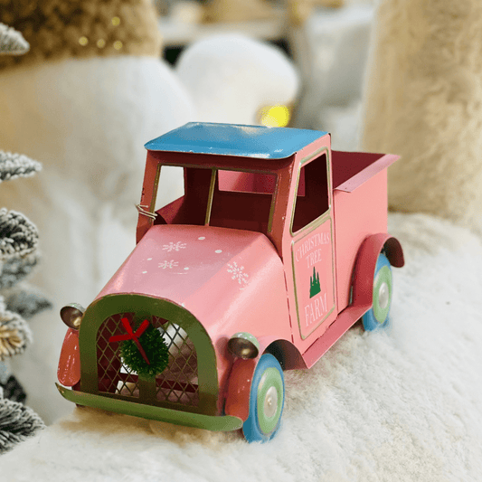 Caminhão Natalino Rosa e Azul de Metal 30x16cm
