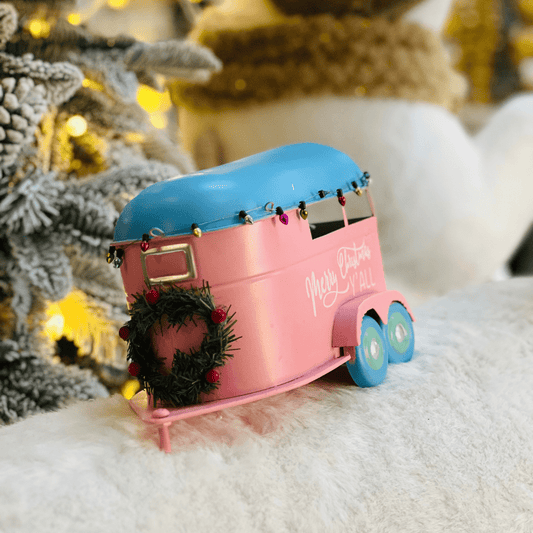 Trailer Natalino Rosa e Azul de Metal 25x15cm