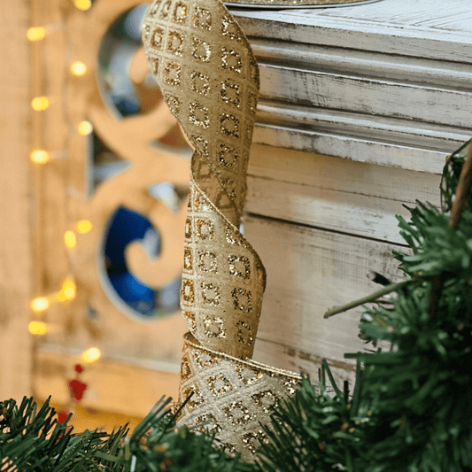 Fita Aramada Natalina Dourada 6,3cm x 9,14m