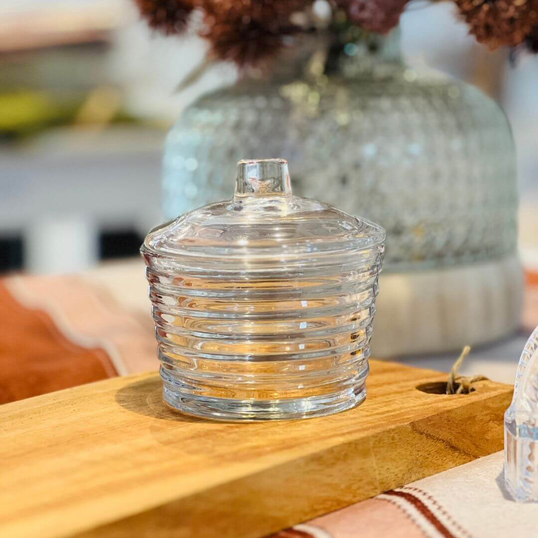 O Açucareiro Colmeia é feito em cristal de chumbo com lapidação refinada e design inspirado nas formas da colmeia, conferindo elegância e brilho à mesa. Ideal para servir açúcar com charme e sofisticação, ele é perfeito para composições clássicas ou contemporâneas.