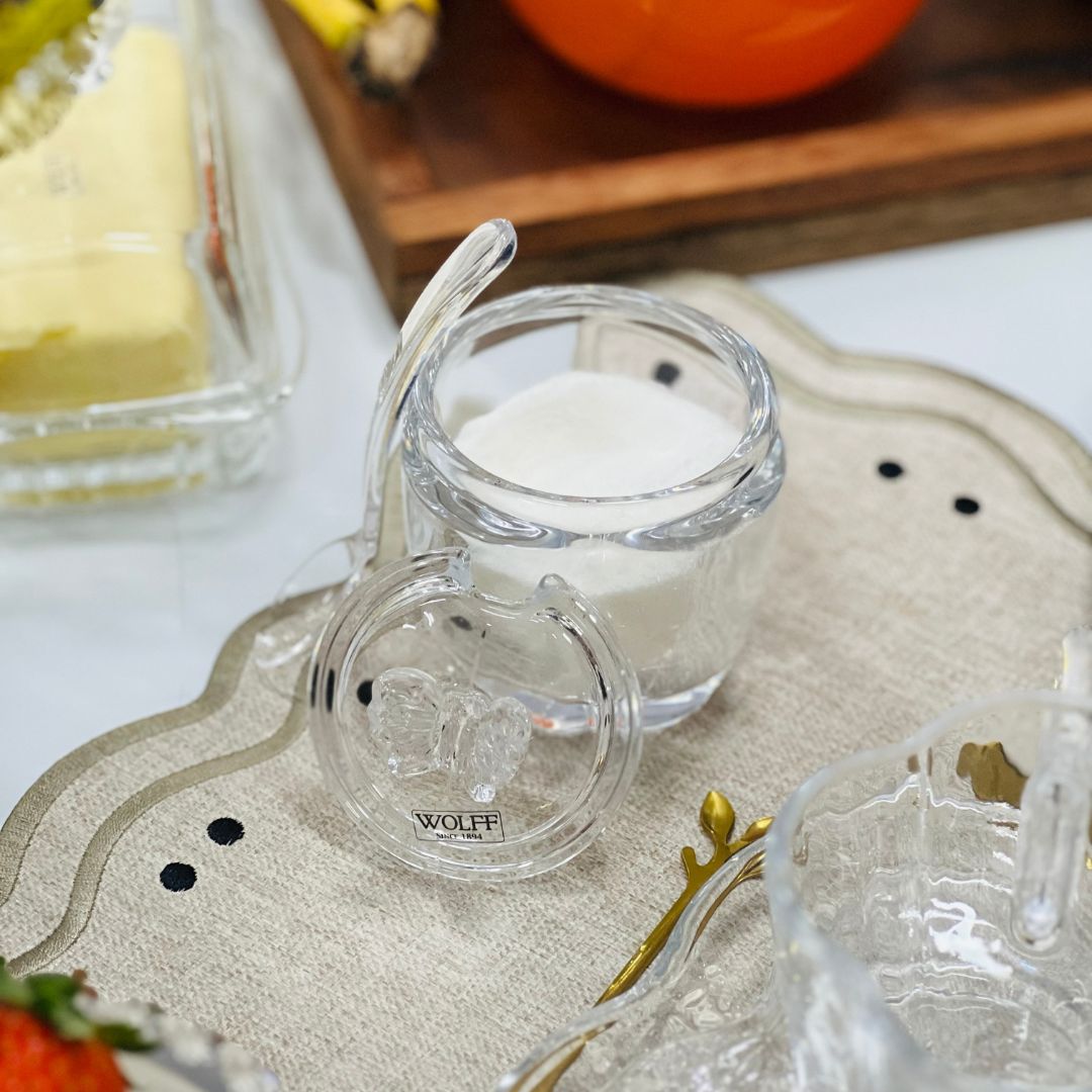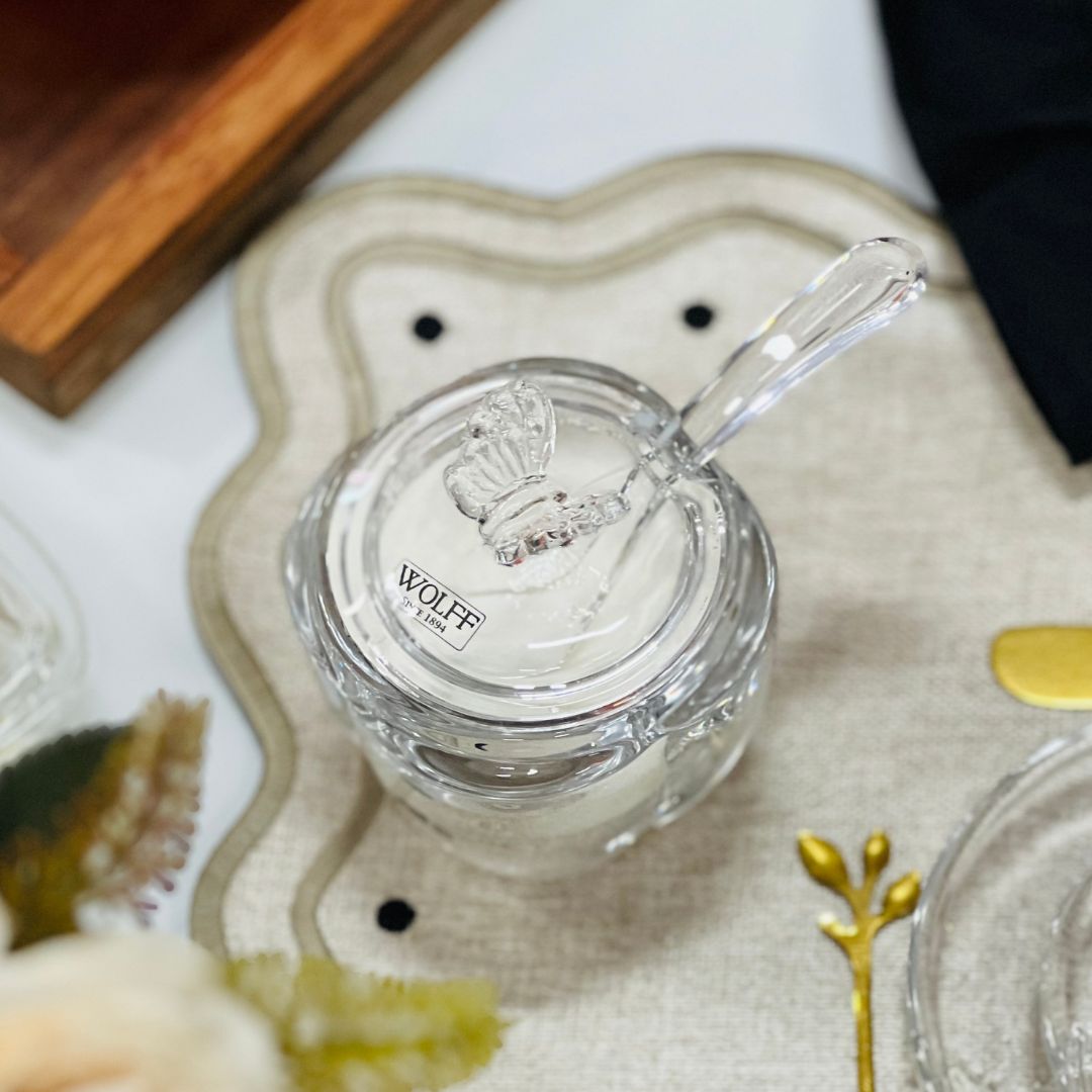 Açucareiro de Vidro Com Colher Butterfly – 8,5x8,5x11cm