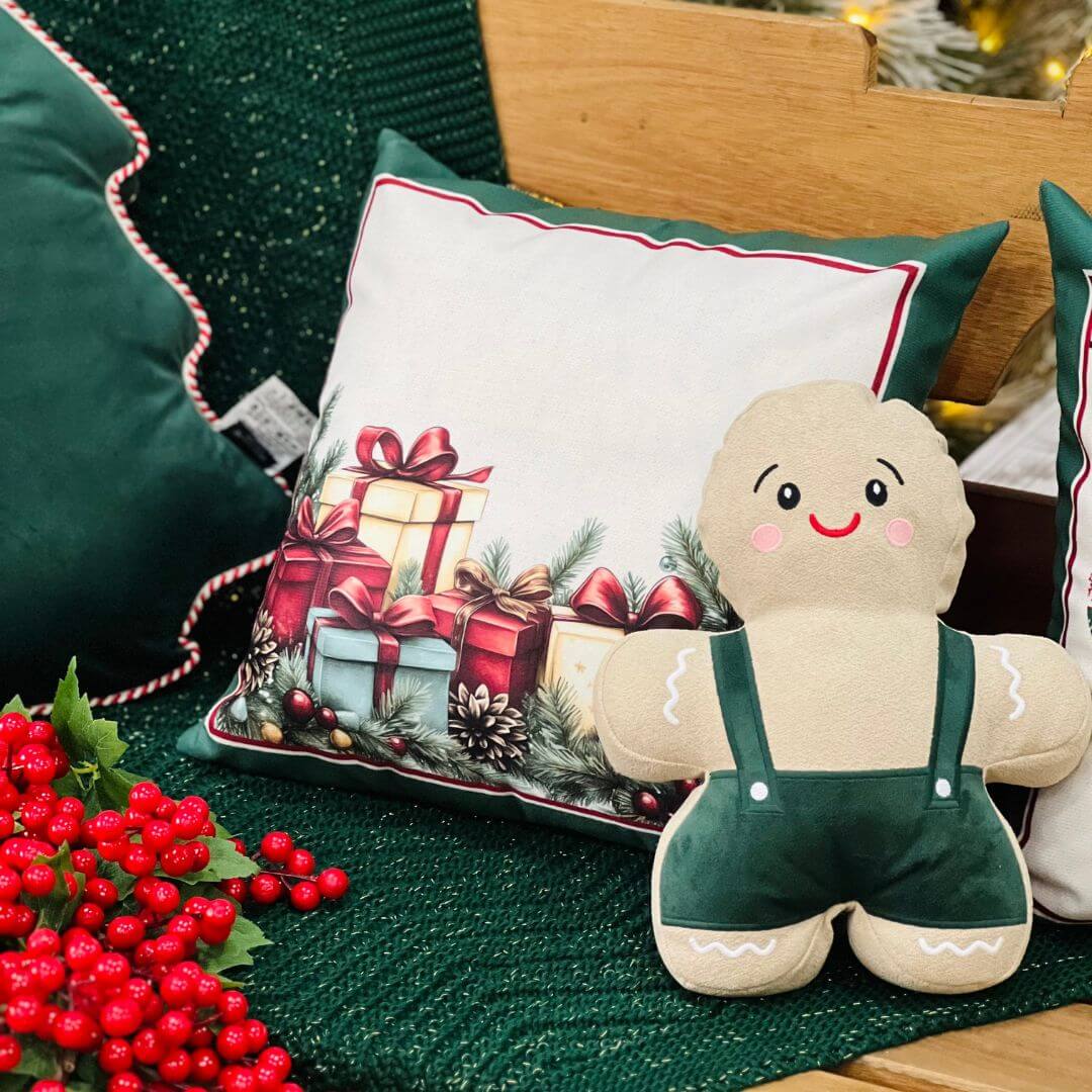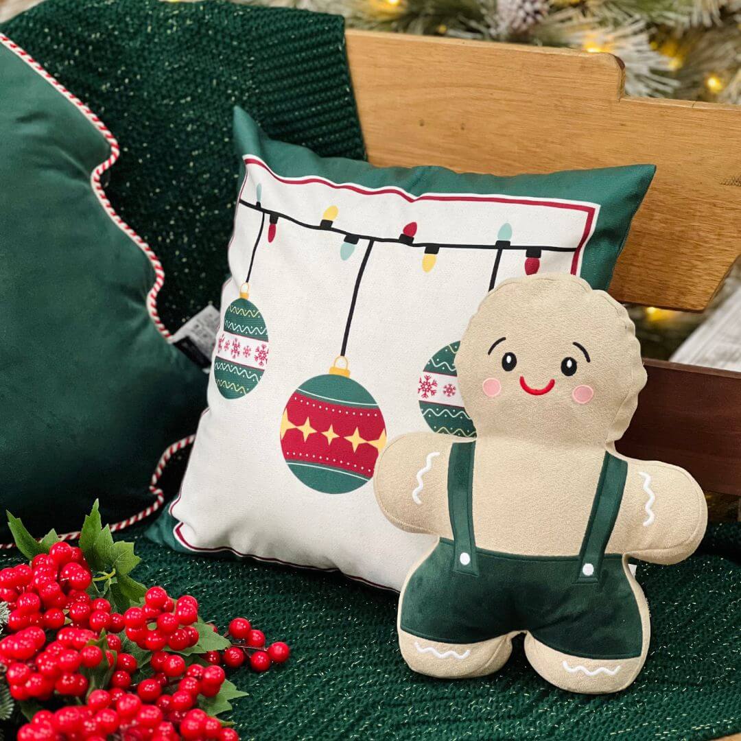 A Almofada Natalina em formato Ginger é perfeita para deixar sua decoração ainda mais charmosa e divertida. Com detalhes bordados e um formato inspirado nos tradicionais biscoitos natalinos, ela traz um toque lúdico e acolhedor para sofás, camas ou cantinhos especiais da casa.