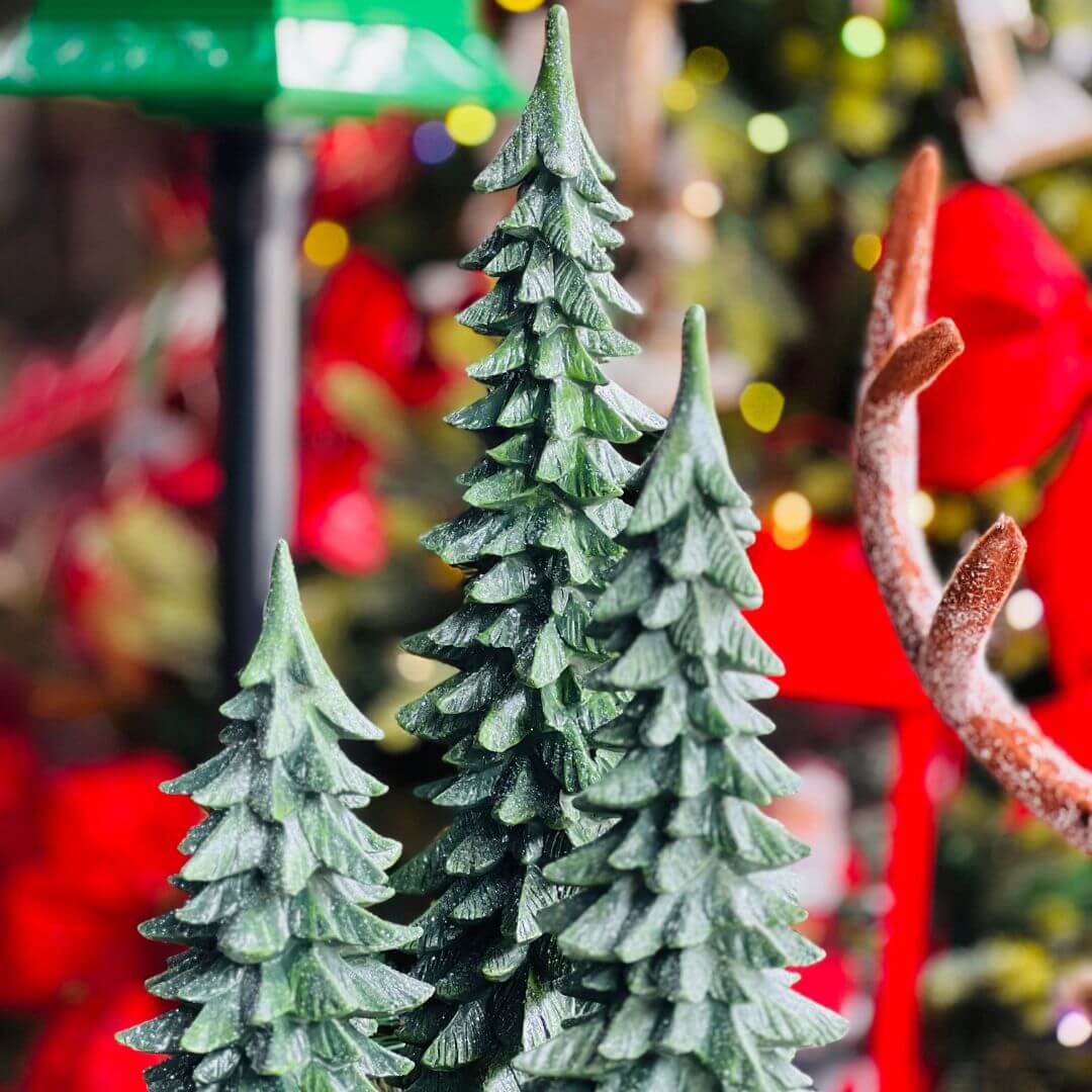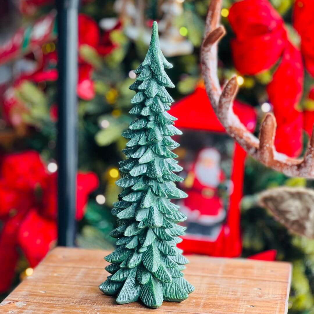 Esta árvore decorativa, feita de resina verde, traz o espírito natalino com um toque clássico e elegante. Com 38cm de altura, é perfeita para complementar sua decoração de Natal, seja em mesas, aparadores ou prateleiras, trazendo um charme especial aos ambientes.