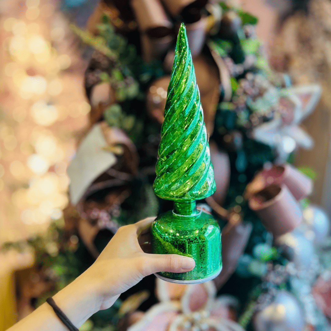 A Árvore Natalina de Vidro Giratória com LED Verde é um enfeite sofisticado que une delicadeza e brilho para sua decoração de Natal. Produzida em vidro, traz elegância e modernidade, enquanto a iluminação em LED verde proporciona um efeito iluminado encantador. Com 30cm de altura, funciona com pilhas 3AA (não inclusas) e conta com movimento giratório, tornando a peça ainda mais especial para compor ambientes natalinos.