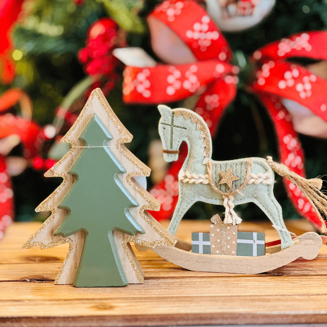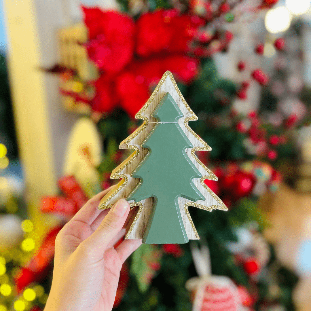 A Árvore Natalina Verde de Madeira 16cm é uma peça delicada e charmosa, ideal para complementar a decoração de Natal com um toque natural e elegante. Seu design simples e acabamento em tom verde trazem um ar rústico e aconchegante, perfeito para enfeitar mesas, prateleiras, aparadores ou composições decorativas natalinas.