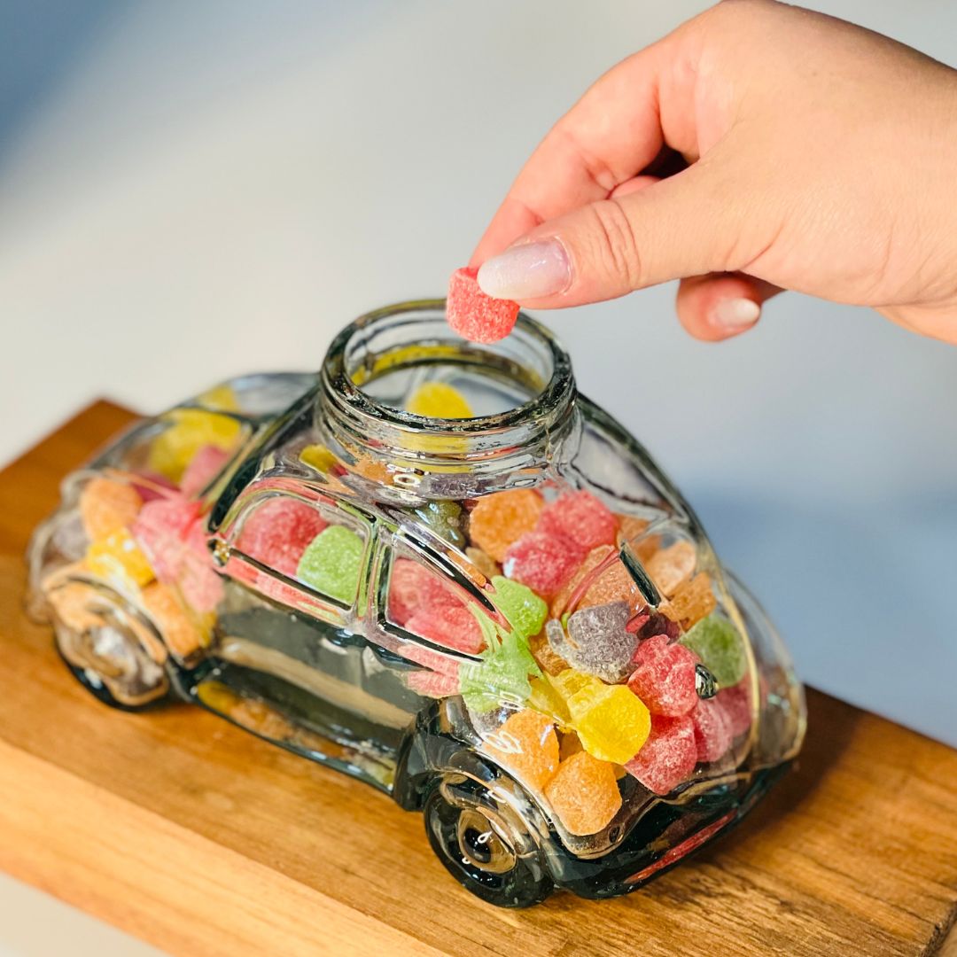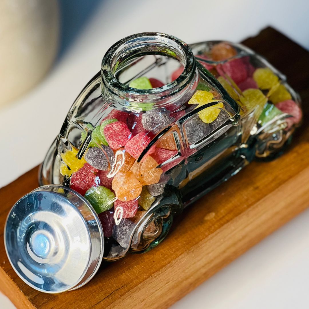 Este charmoso baleiro em formato de fusca transparente é perfeito para armazenar e expor doces de maneira divertida e encantadora. Ideal para decorar mesas de festas, presentear ou complementar sua coleção de peças decorativas.