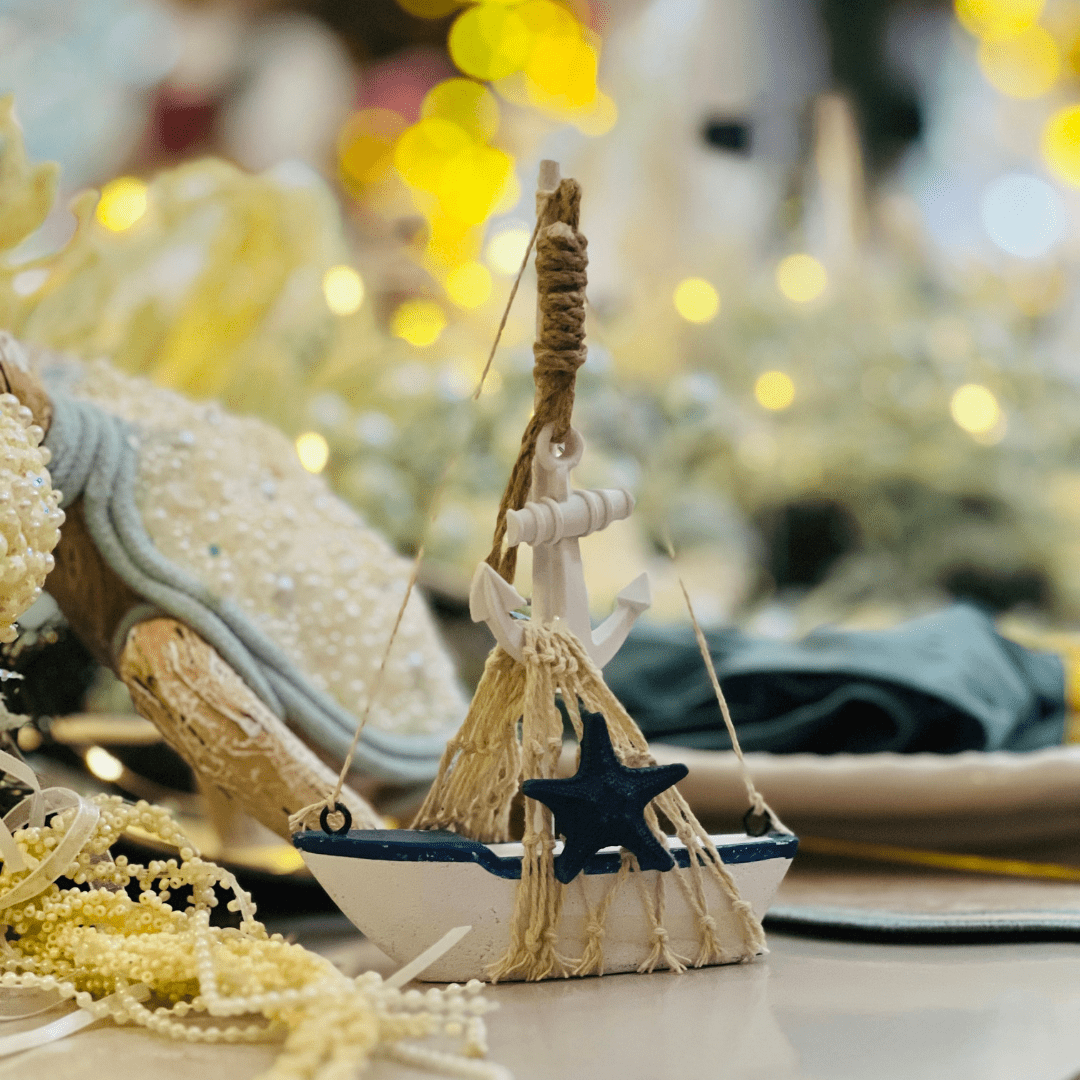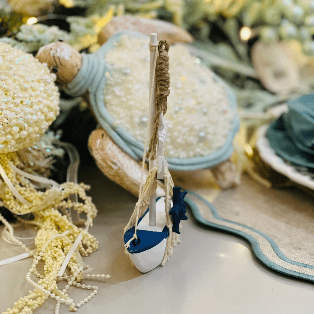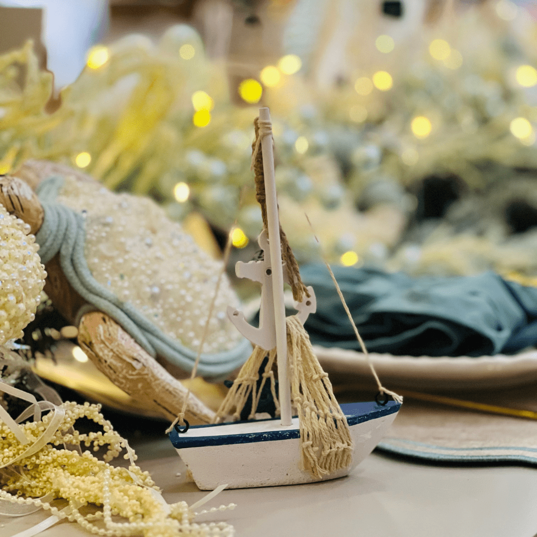 O Barco Decorativo Natal Náutico de Madeira traz um toque único e criativo à decoração natalina, combinando o encanto do Natal com o charme do estilo marítimo. Ideal para complementar composições temáticas, enfeitar prateleiras, mesas ou árvores com elegância e originalidade.