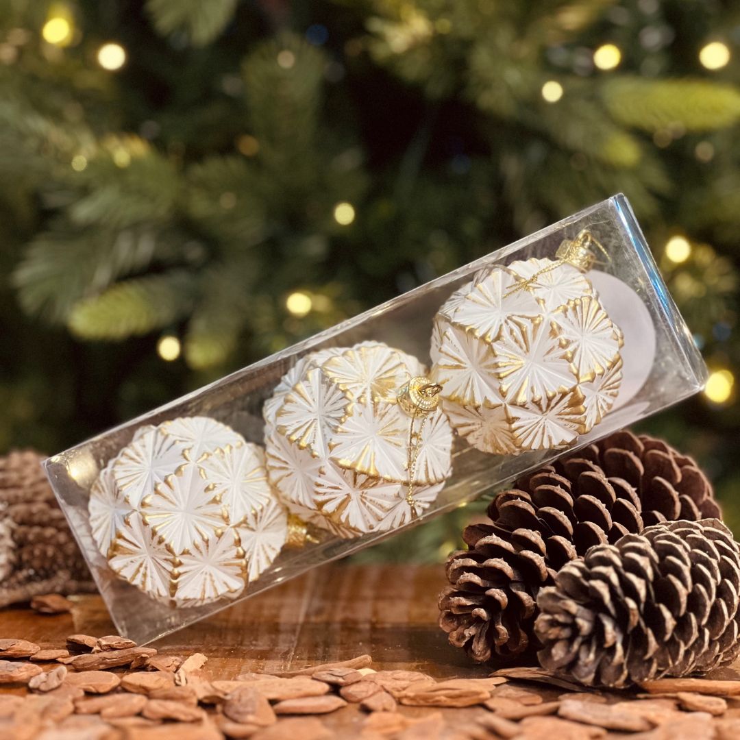 Bola Decorada Dourado Kit Com Três - Diam 8 Cm