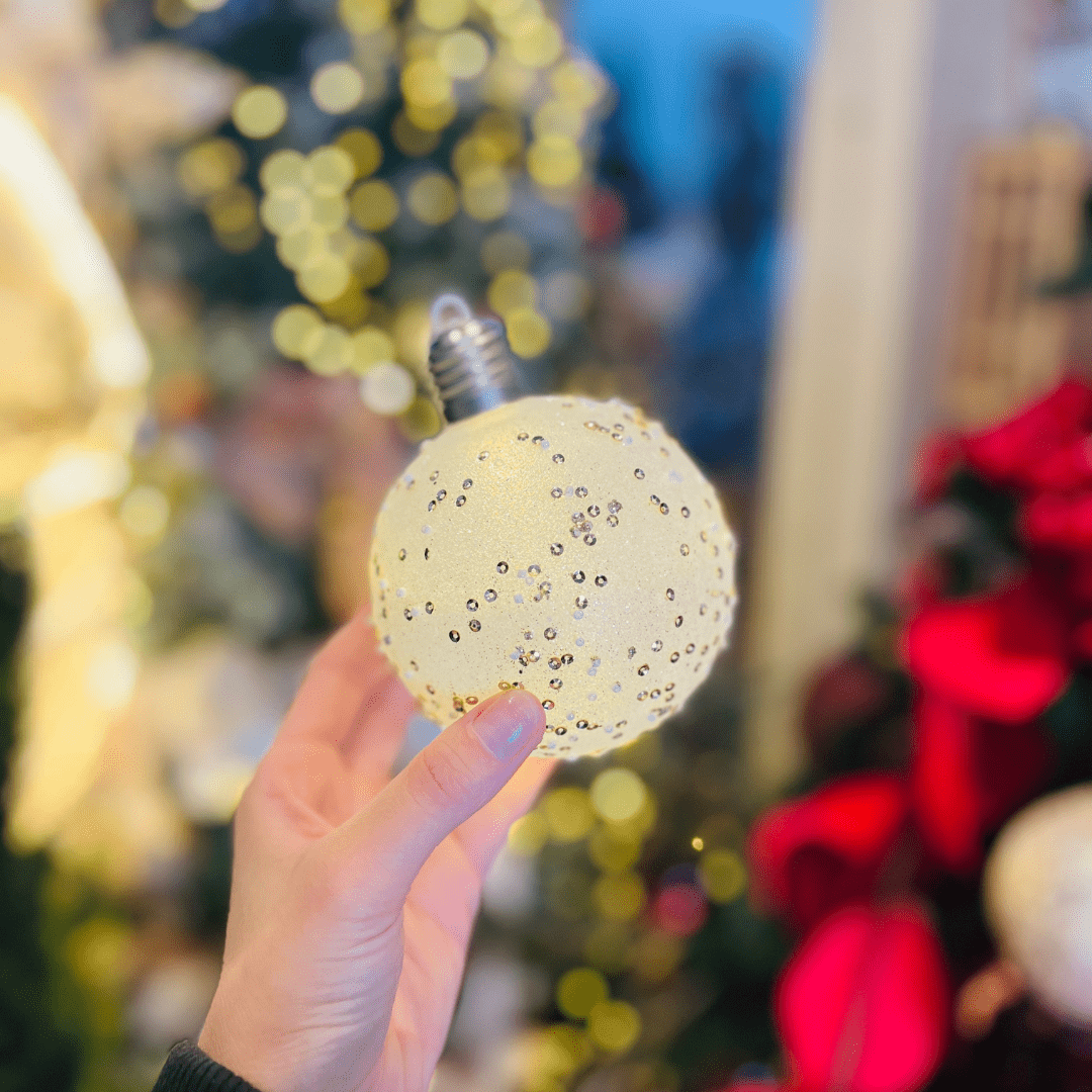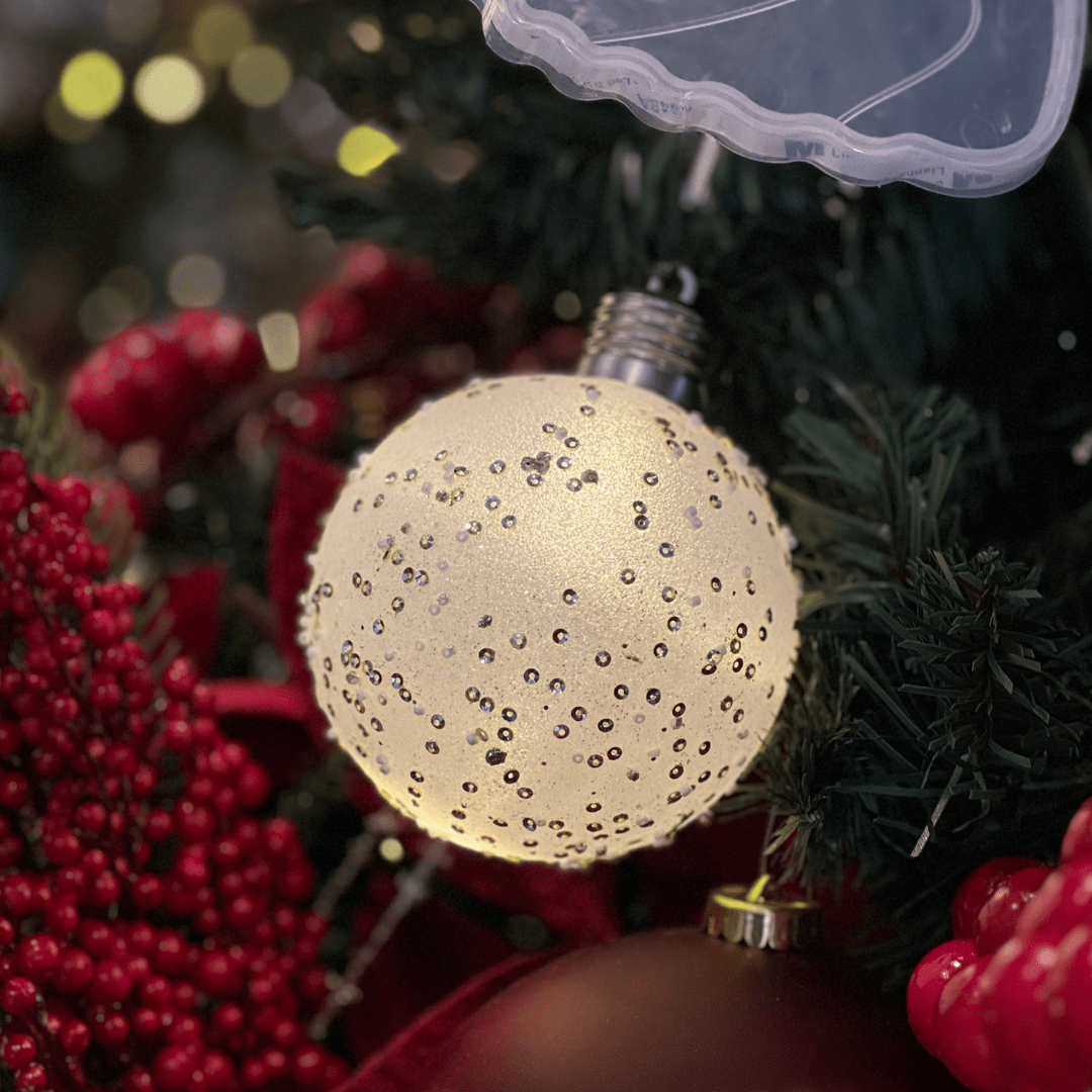 Bola Natalina Branca Glitter Com Led 10cm - 1un
