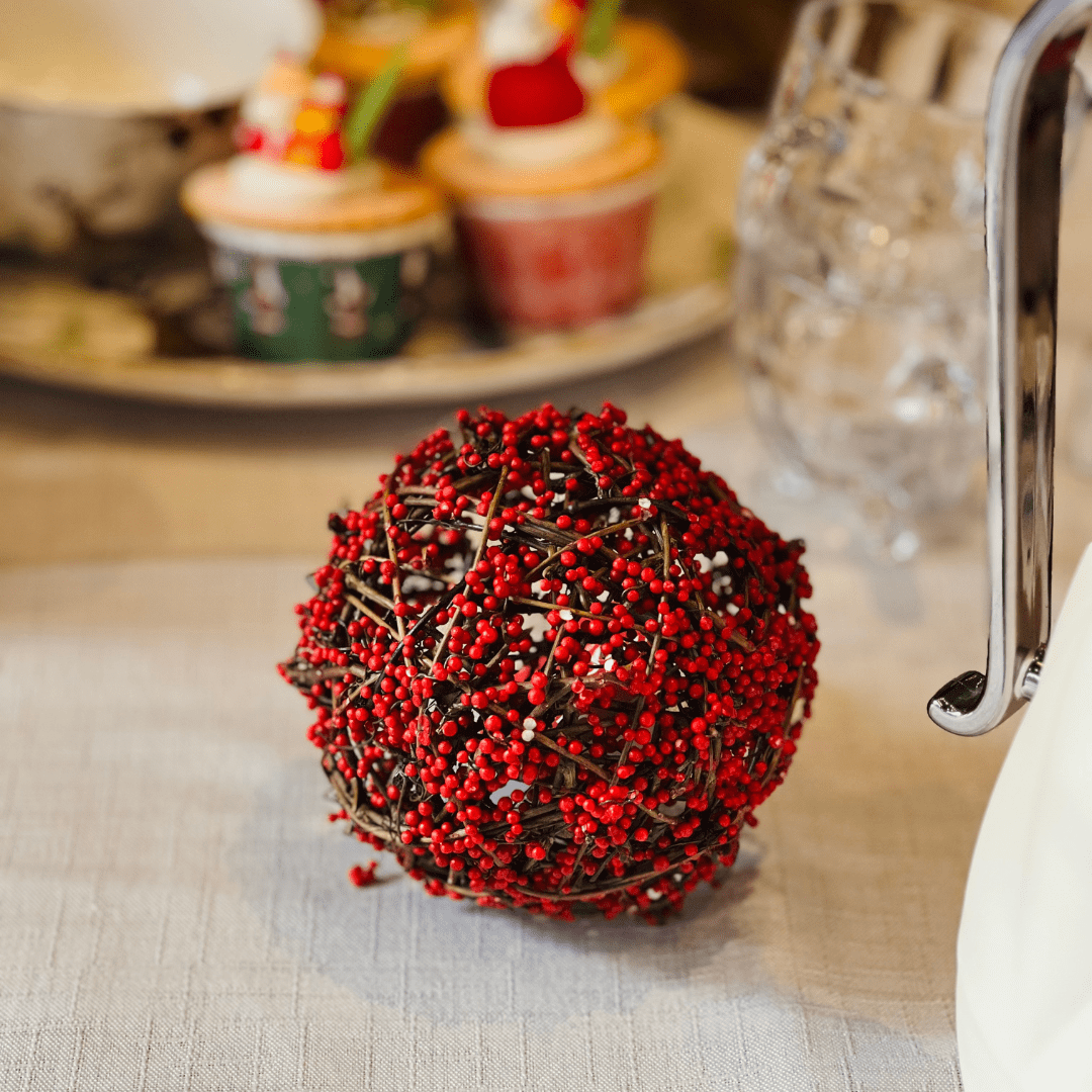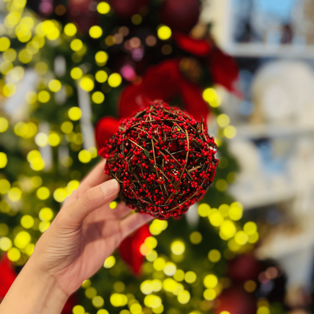 Bola Natalina Vermelha Azevinhos 10cm – 1un