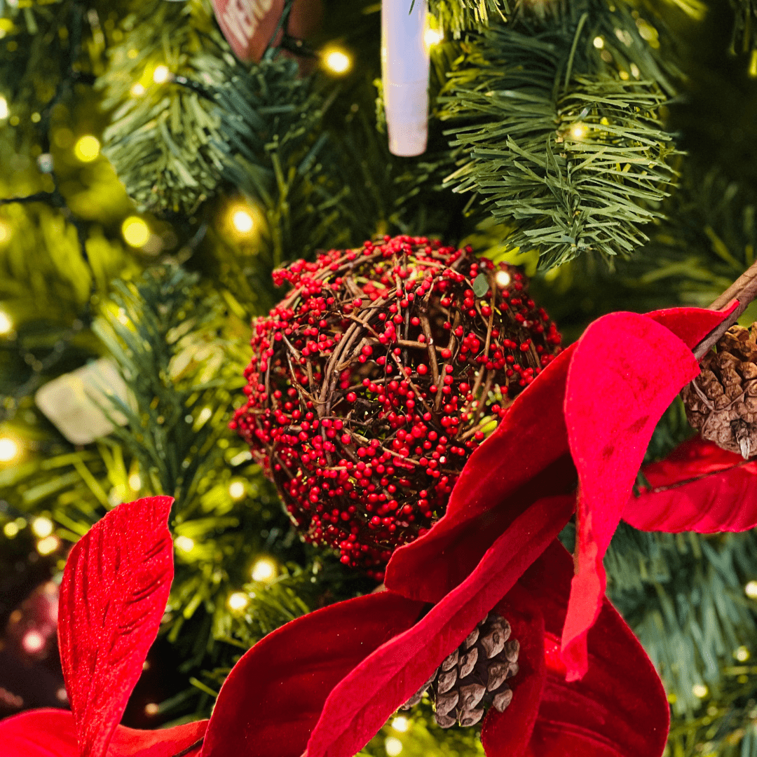A Bola Natalina Vermelha com Azevinhos é um enfeite delicado e elegante, ideal para decorar a árvore de Natal com charme e sofisticação. Com 10cm de diâmetro, apresenta detalhes refinados que trazem um toque festivo e acolhedor ao ambiente.