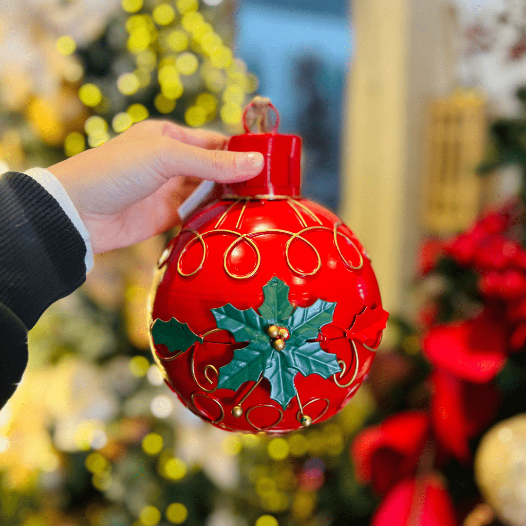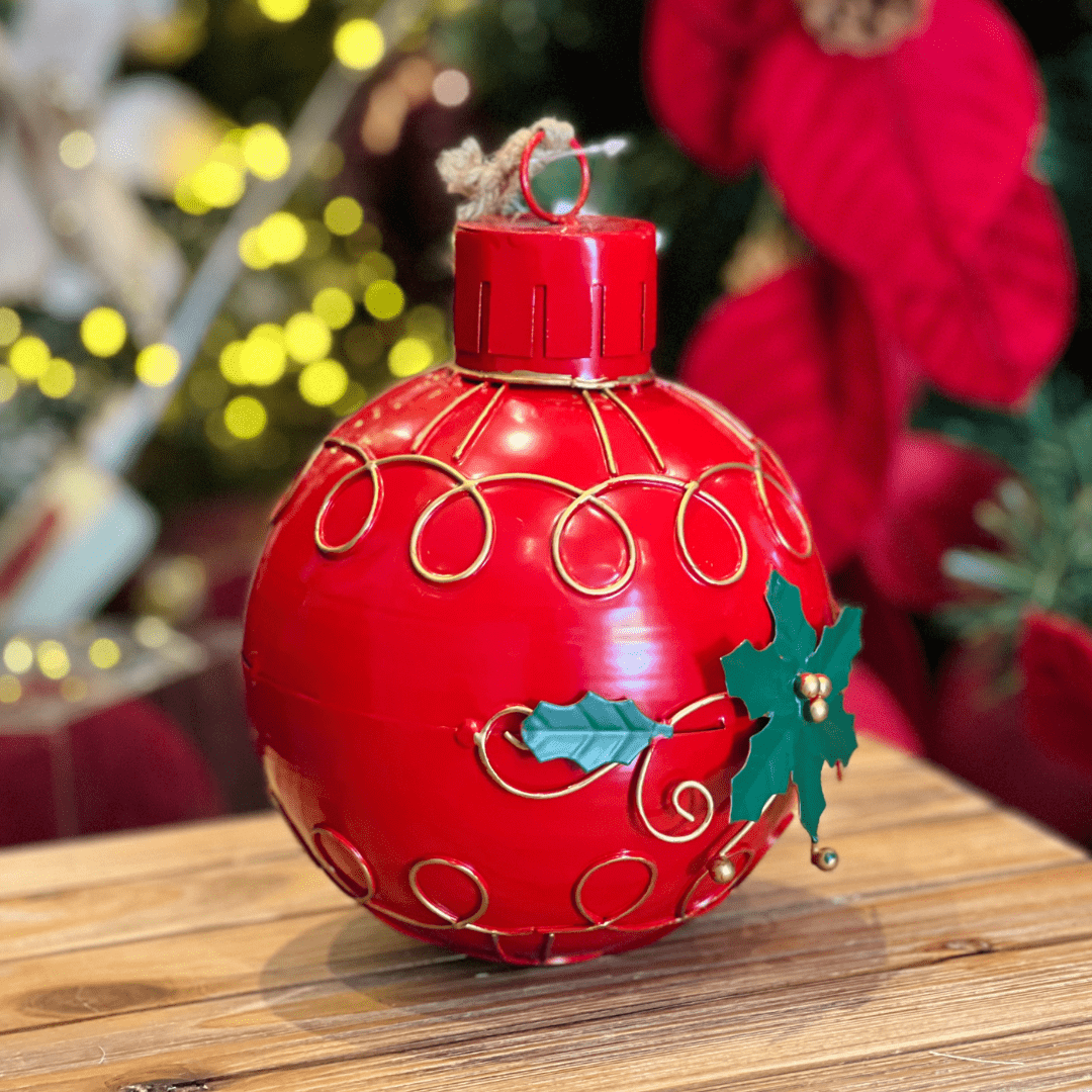A Bola Natalina Vermelha e Dourada de Metal 20x15cm é um enfeite sofisticado para complementar a decoração de Natal. Produzida em metal, apresenta cores vermelha e dourada, trazendo brilho e elegância para árvores, guirlandas ou arranjos festivos.