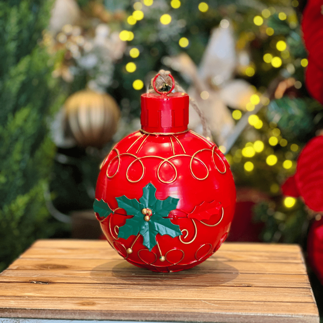 Bola Natalina Vermelha e Dourada de Metal 20x15cm 1un