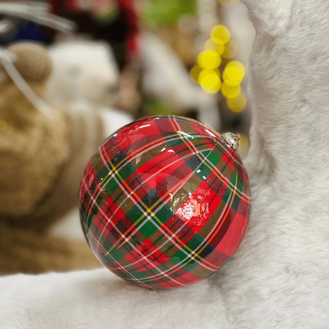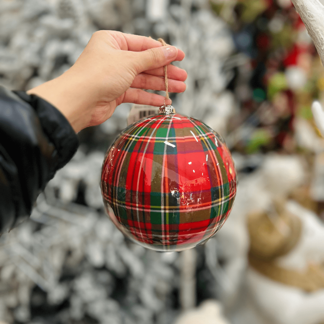 Bola Natalina Xadrez Vermelho e Verde 15cm 1un