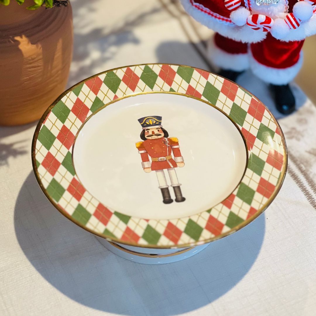 A Boleira Pequena - Soldadinhos Filete Ouro é uma peça sofisticada e encantadora, ideal para dar um toque de elegância e magia às suas sobremesas natalinas. Com um design inspirado nos clássicos soldadinhos, essa boleira é perfeita para servir bolos, tortas e outras delícias durante as celebrações de fim de ano. Os detalhes em filete de ouro adicionam um toque de luxo e sofisticação à sua mesa.