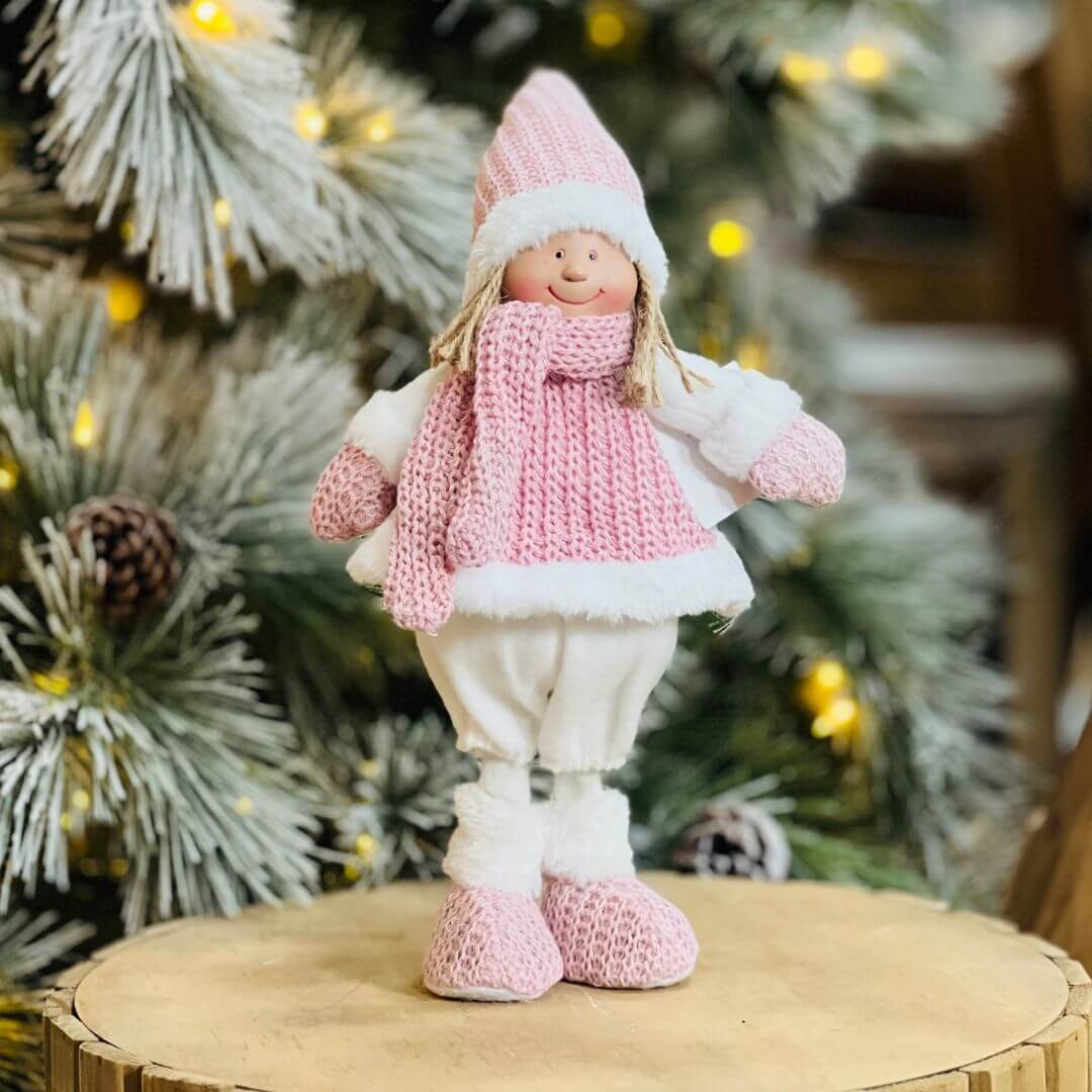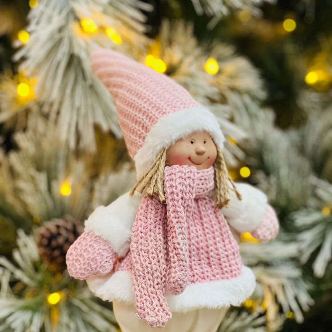 A Boneca Rosa e Branco em Pé é uma peça encantadora que combina delicadeza e charme para enriquecer a decoração natalina. Com vestido em tons suaves e acabamento cuidadoso, ela é perfeita para criar cenários acolhedores e cheios de ternura durante as festas.