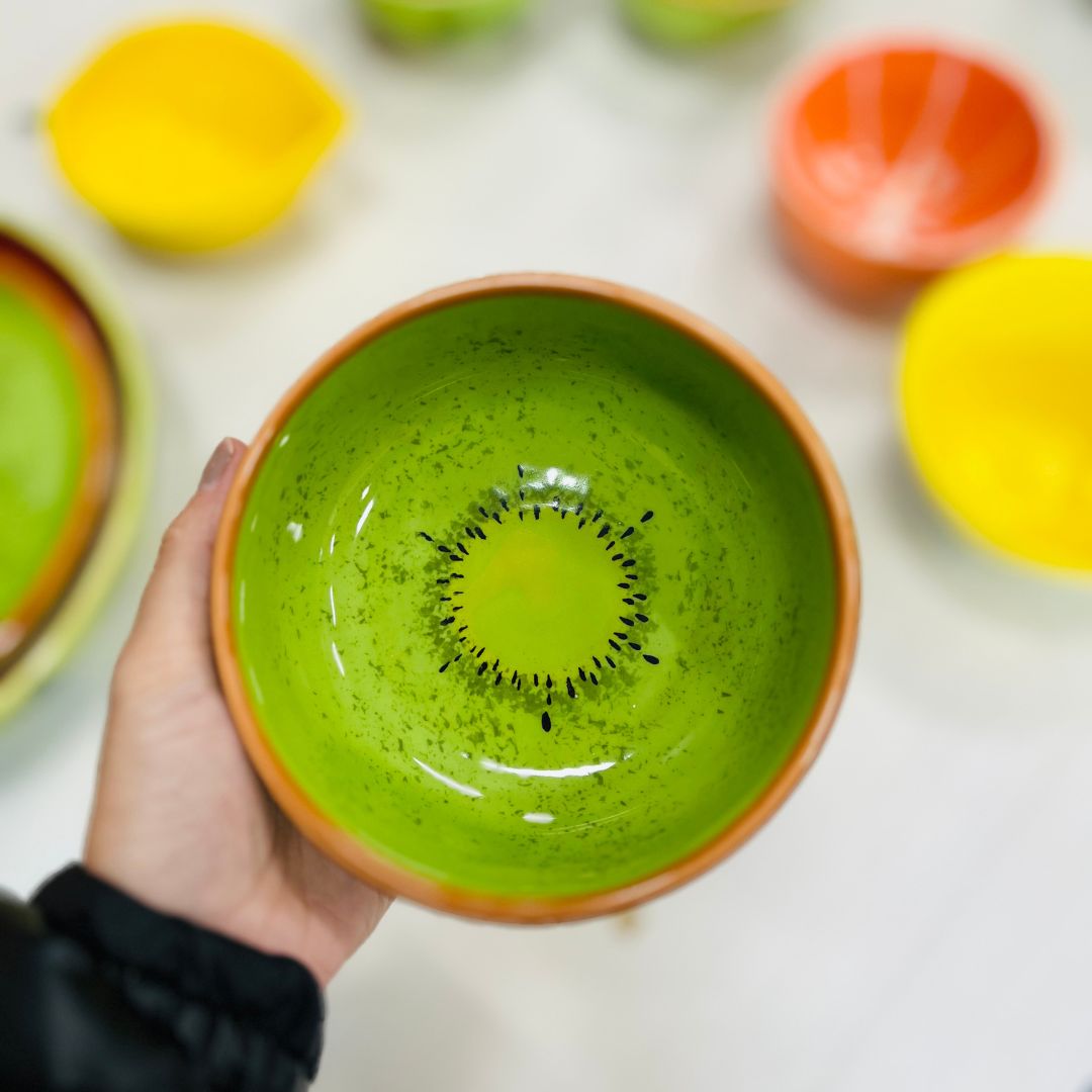 Com design criativo e colorido inspirado na fruta kiwi, esse bowl grande no estilo tutti-frutti é perfeito para servir saladas, frutas, massas ou pratos compartilhados. Uma peça vibrante que combina funcionalidade e um toque tropical para deixar sua mesa ainda mais charmosa.