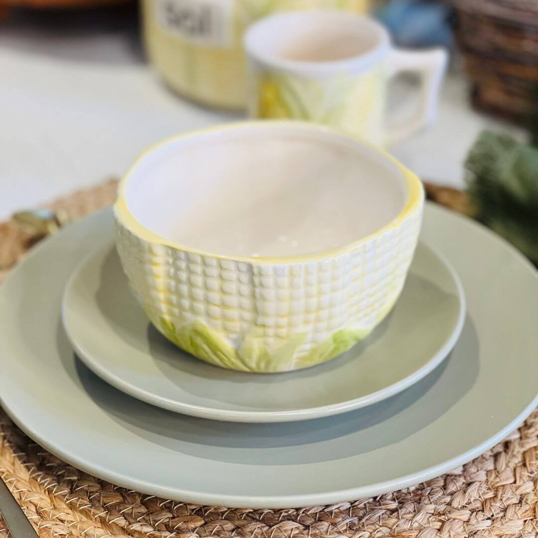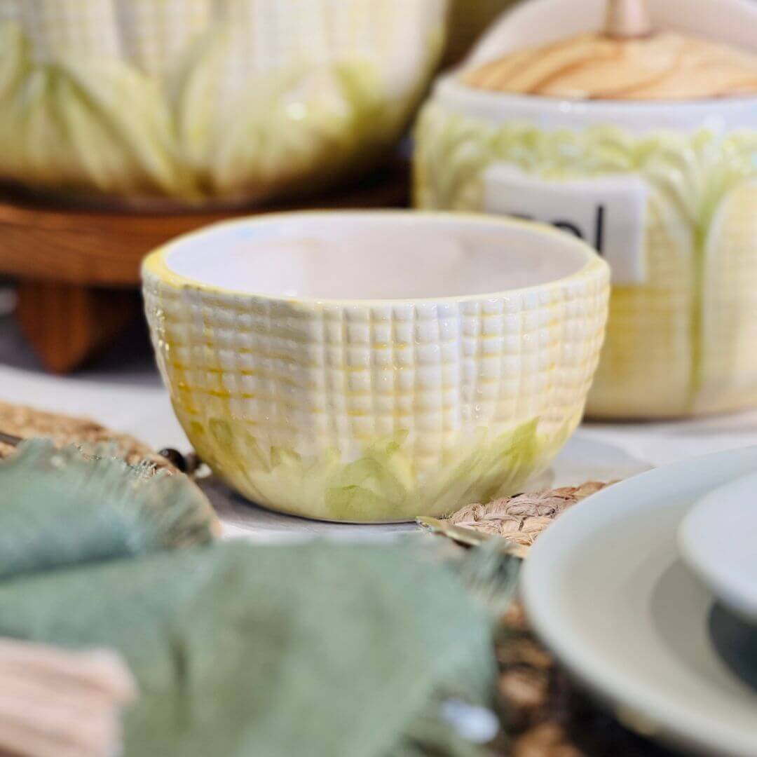 Bowl decorativo com tema de milho, pintado à mão com riqueza de detalhes que valorizam o artesanato brasileiro. Perfeito para servir porções, petiscos ou até compor uma mesa posta temática com estilo rústico e criativo. Uma peça charmosa e funcional para quem aprecia itens únicos.