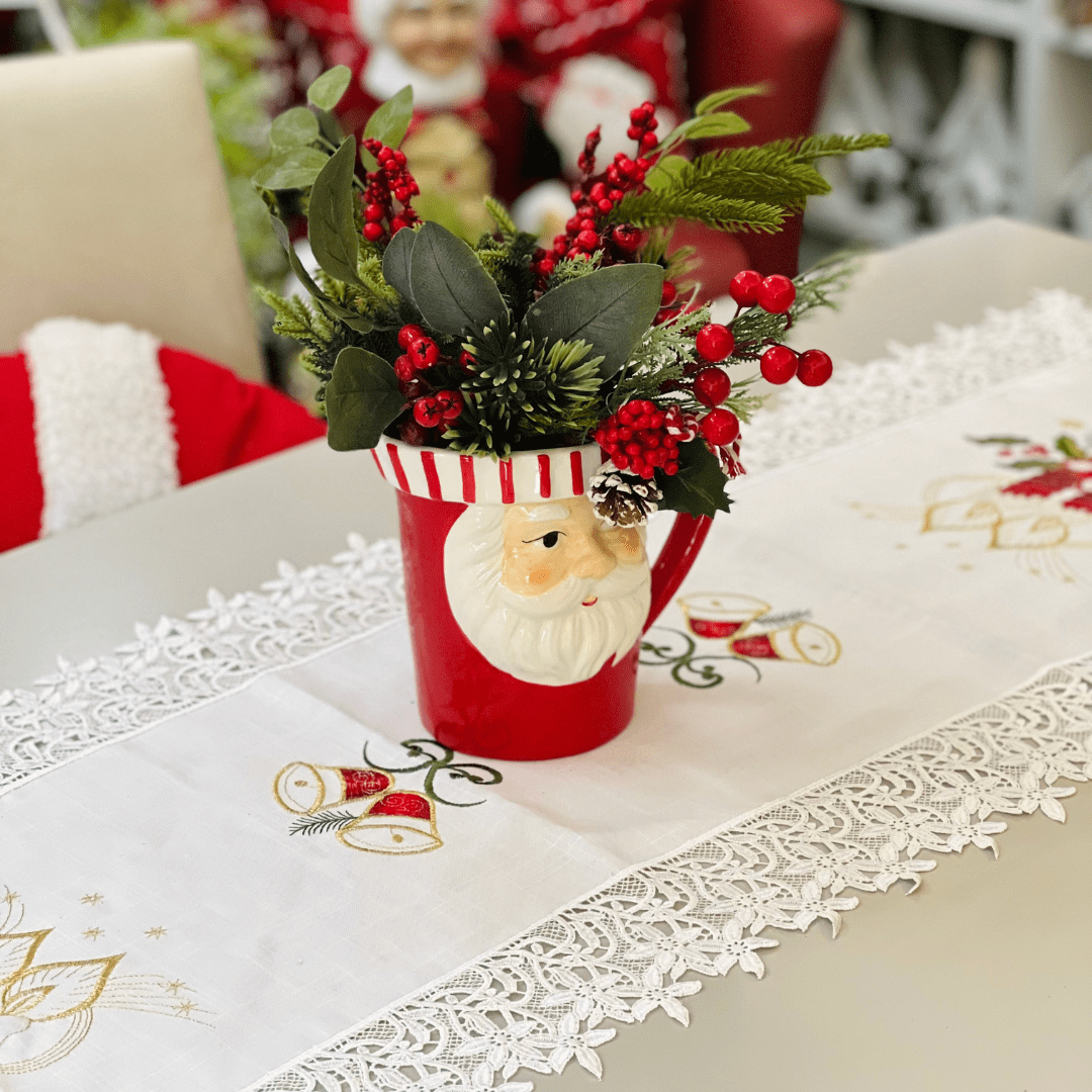 O Caminho de Mesa Natalino com Bordado e Guipir é perfeito para adicionar charme e elegância à decoração de Natal. Seu design delicado com bordados e acabamento em guipir valoriza a mesa, tornando cada refeição mais especial e festiva.
