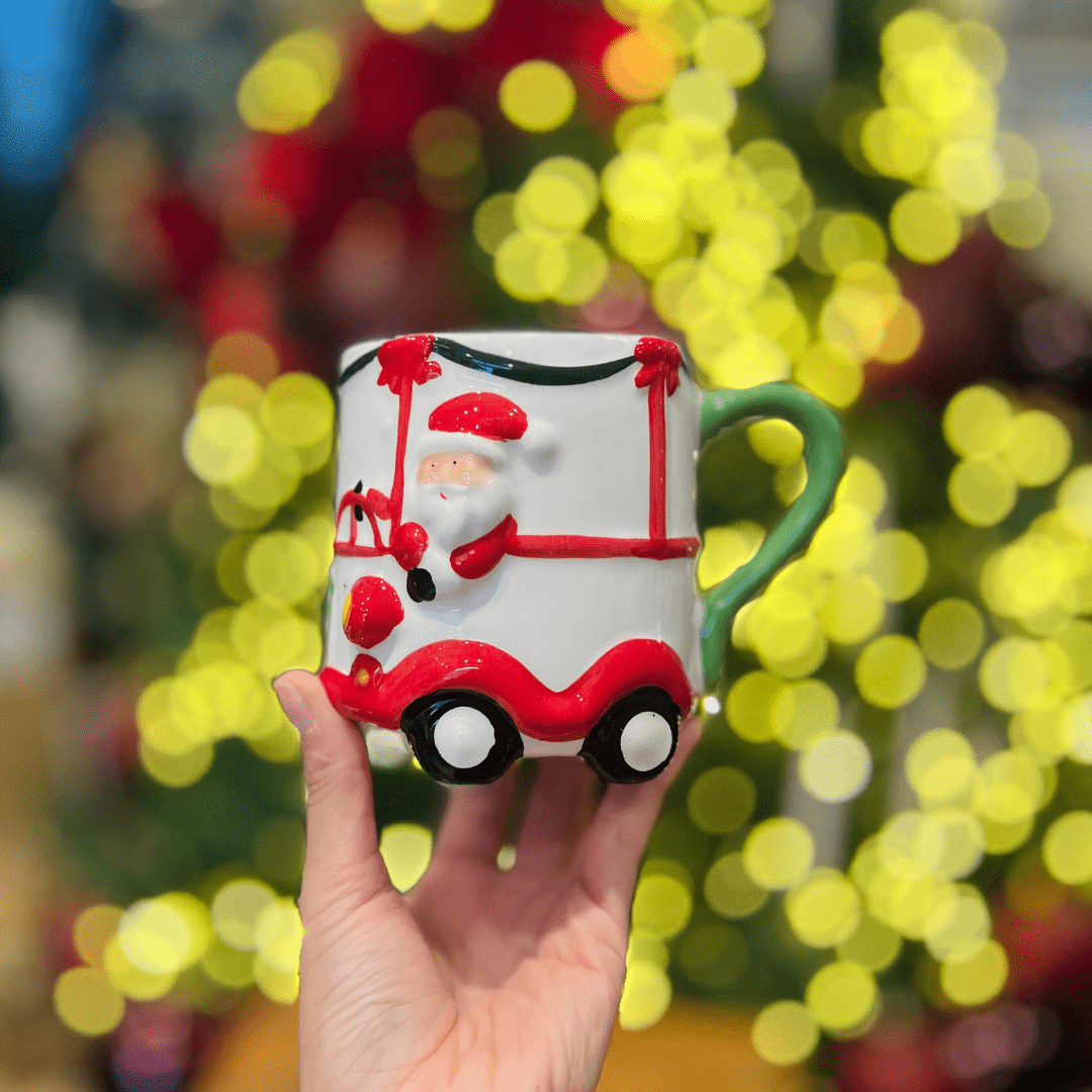 Caneca Natalina Carro do Noel de Cerâmica 13cm