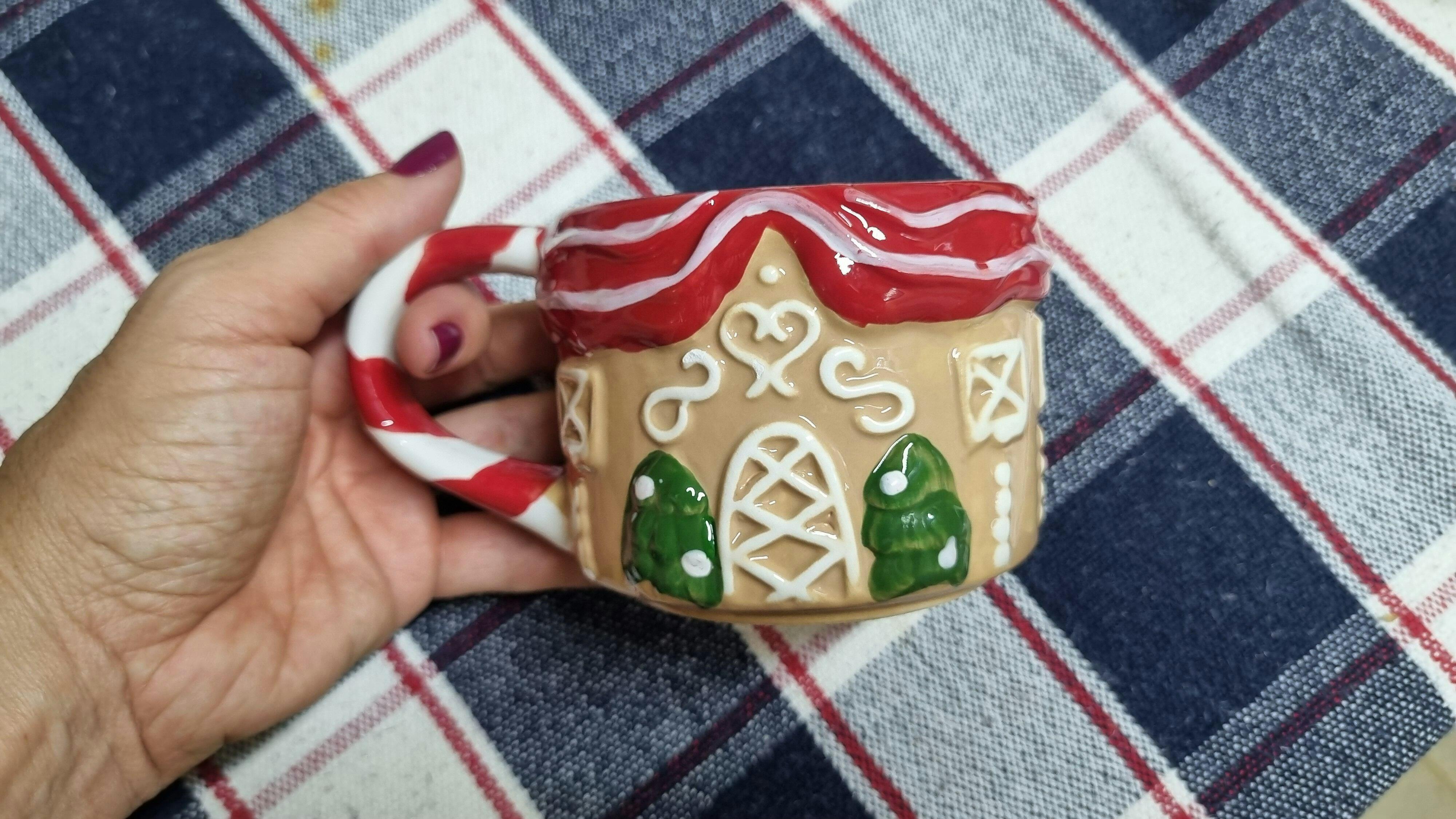 Caneca Natalina de Cerâmica Casa Gingerbread Vermelha – 350ml – 7cm