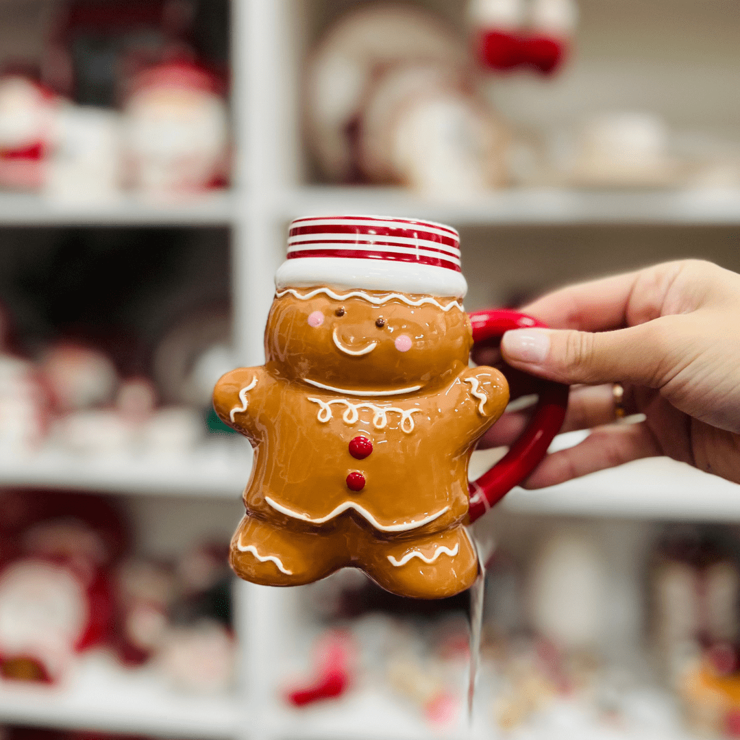 A Caneca Natalina de Cerâmica em Formato de Ginger é perfeita para saborear bebidas quentes como café, chá ou chocolate durante as festas de fim de ano. Com capacidade de 350ml e altura de 12cm, apresenta design inspirado no tradicional biscoito gingerbread, trazendo charme, diversão e originalidade à mesa. Produzida em cerâmica resistente, combina durabilidade, praticidade e beleza, sendo também uma ótima opção de presente natalino.