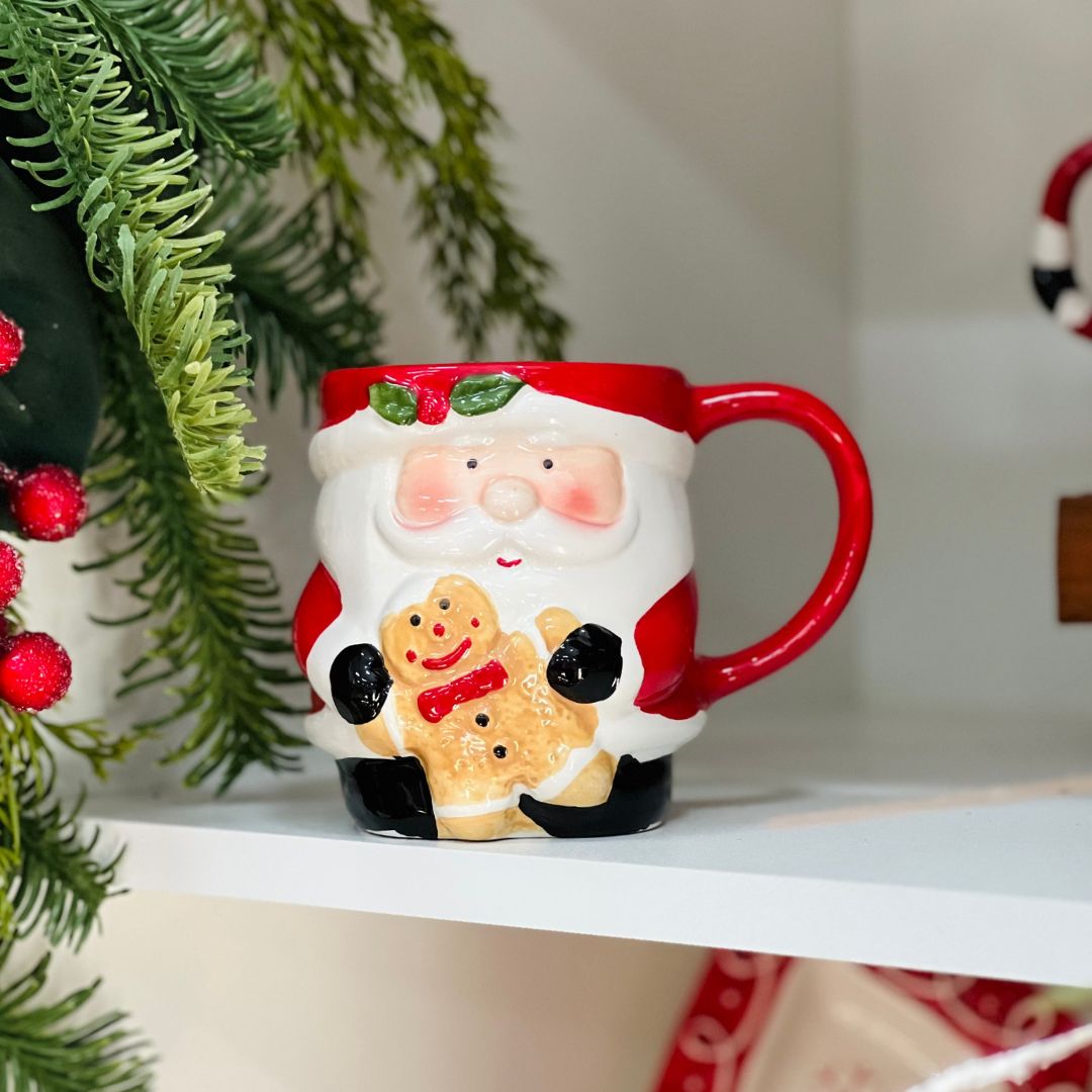 Caneca Papai Noel com Ginger de Cerâmica – 12,5cmx8,5cmx10cm