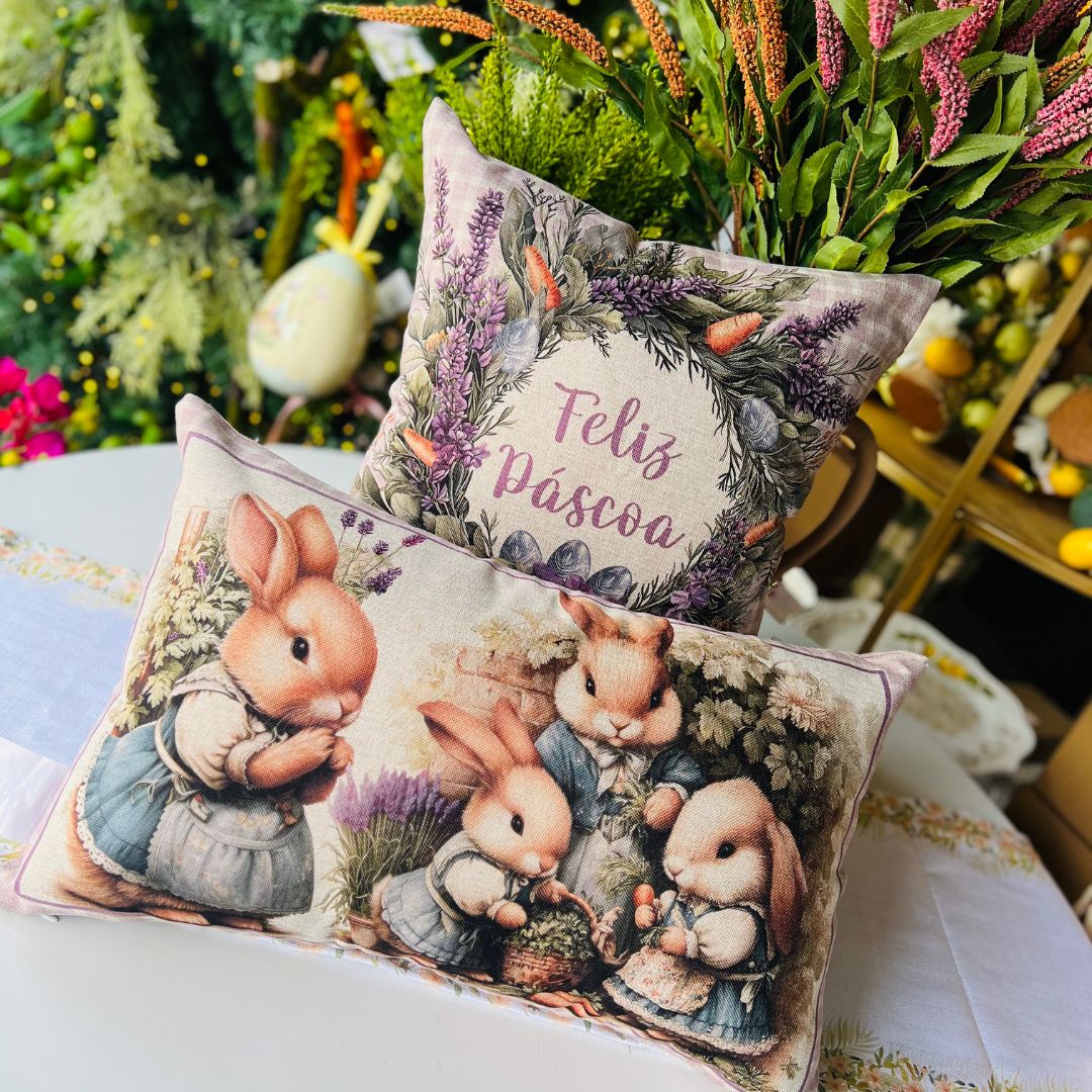 A Capa Feliz Páscoa é perfeita para deixar sua decoração mais alegre e acolhedora durante a temporada. Com estampa temática e a frase “Feliz Páscoa”, a peça transmite charme, leveza e um clima festivo ao ambiente. A imagem é aplicada somente na parte da frente da capa, sendo o verso liso. Ideal para renovar almofadas de sofás, poltronas, cadeiras ou camas, criando uma composição harmoniosa e especial.