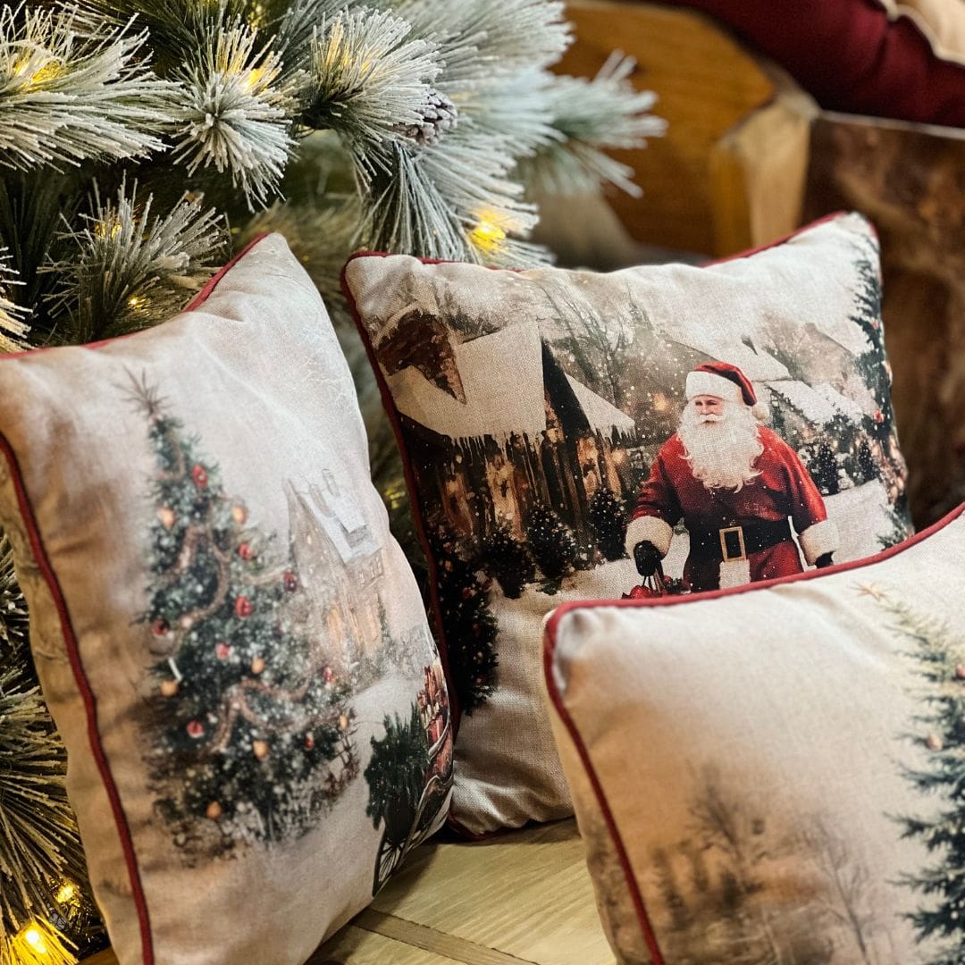 A Capa Natalina Cenário Árvore e Trenó com Cordone é perfeita para deixar sua decoração ainda mais encantadora. Com ilustração temática que remete à magia do Natal e acabamento em cordone, ela transforma qualquer ambiente com charme, cor e aconchego.