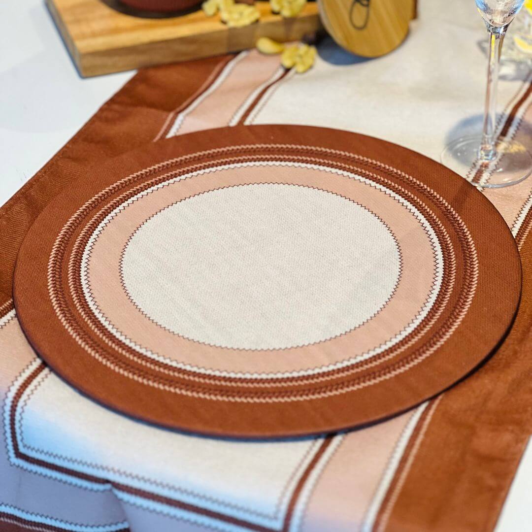 Capa para sousplat com estampa da coleção Delicadeza Terrena, ideal para trazer um toque natural, elegante e acolhedor à sua mesa posta. Prática e versátil, é perfeita para renovar a decoração com charme e suavidade.