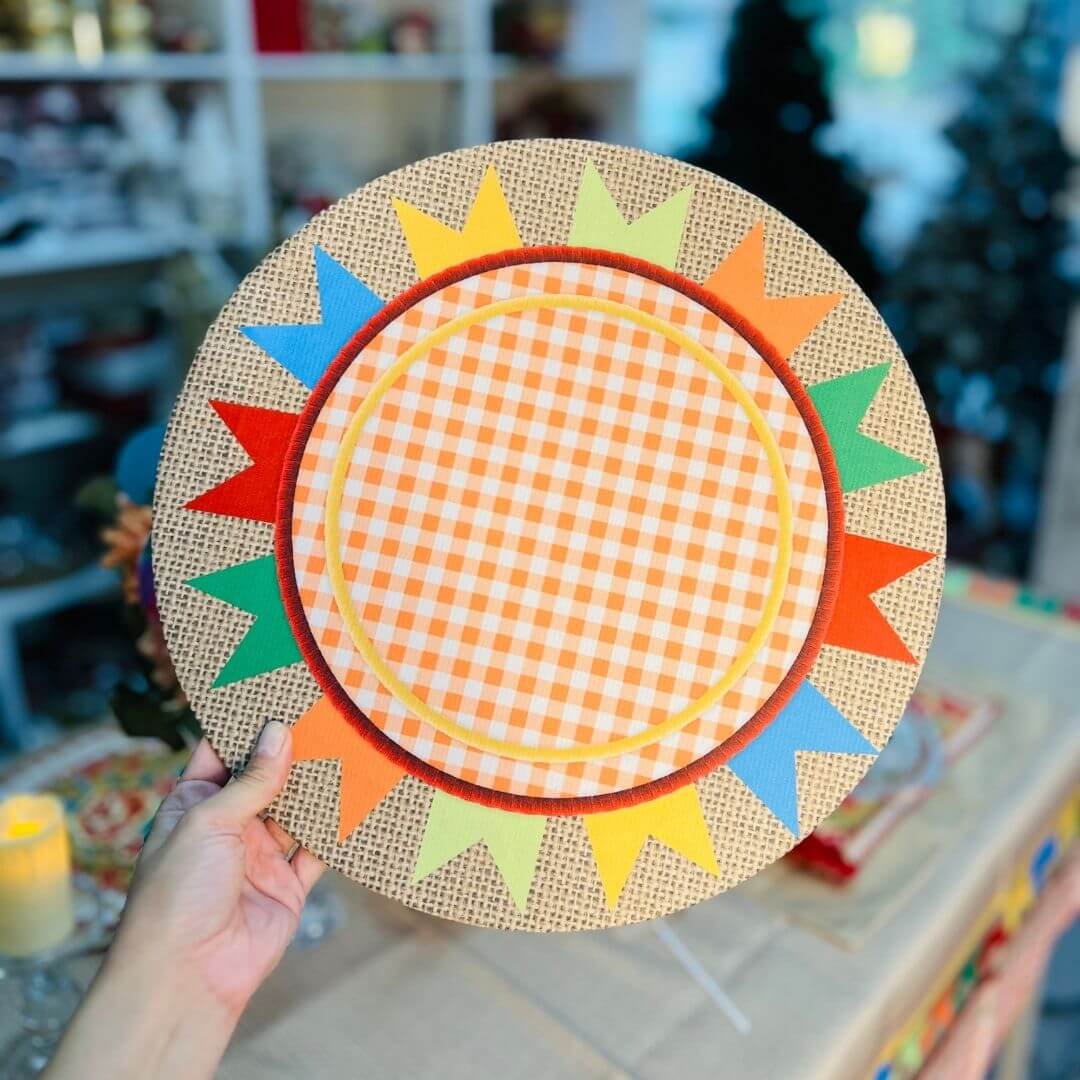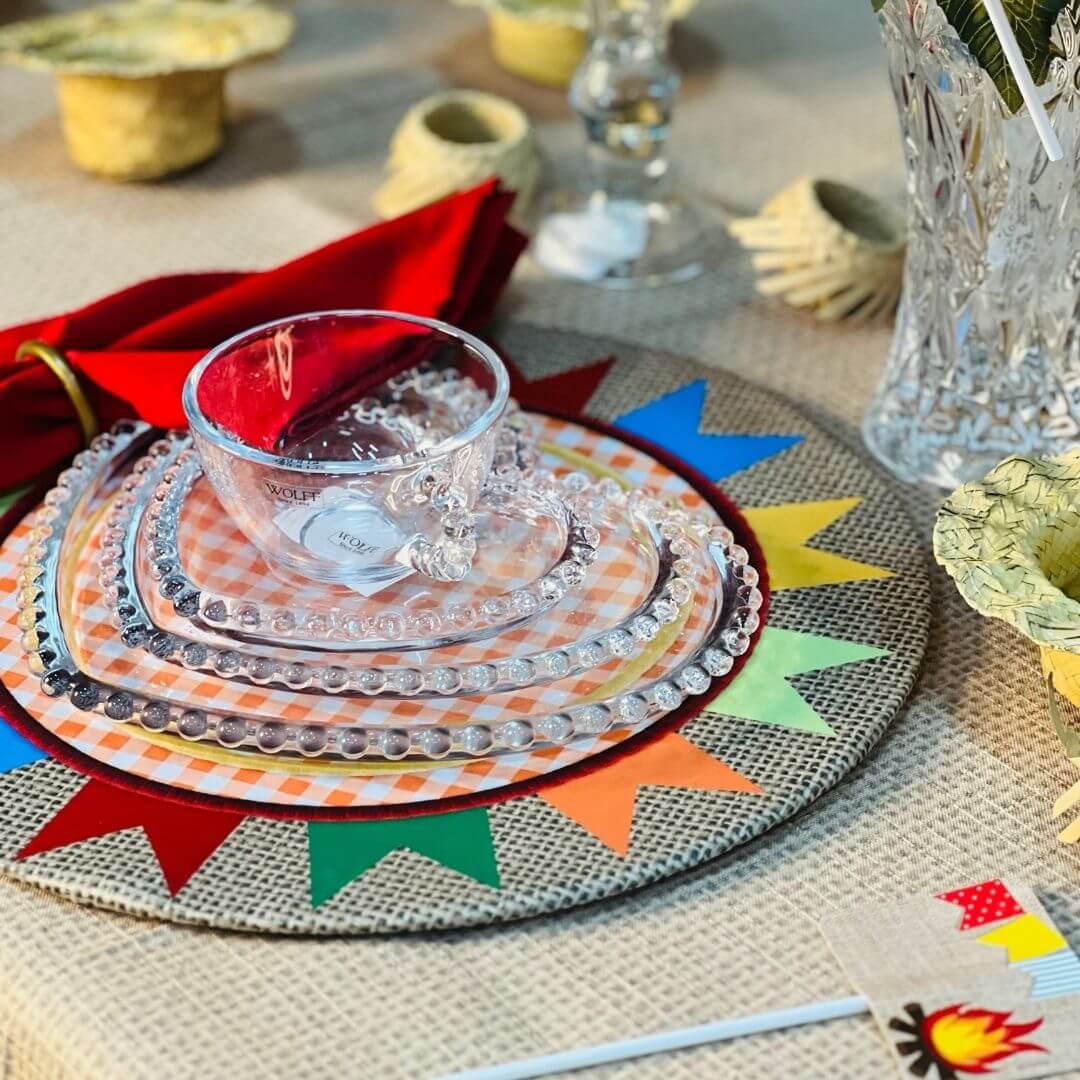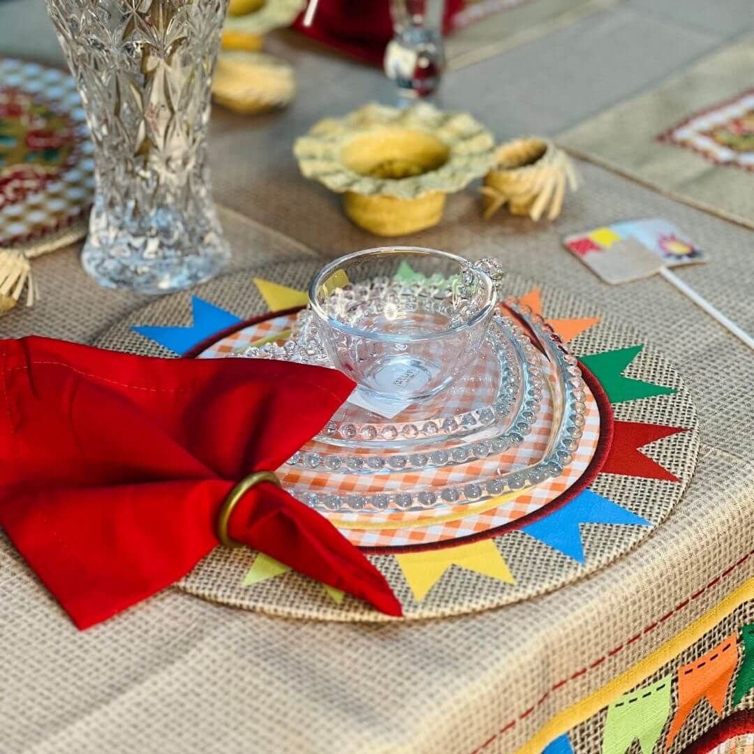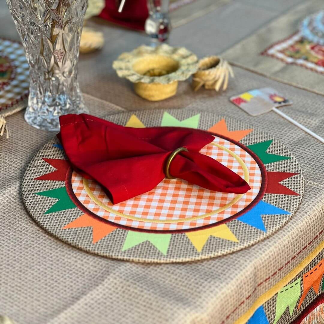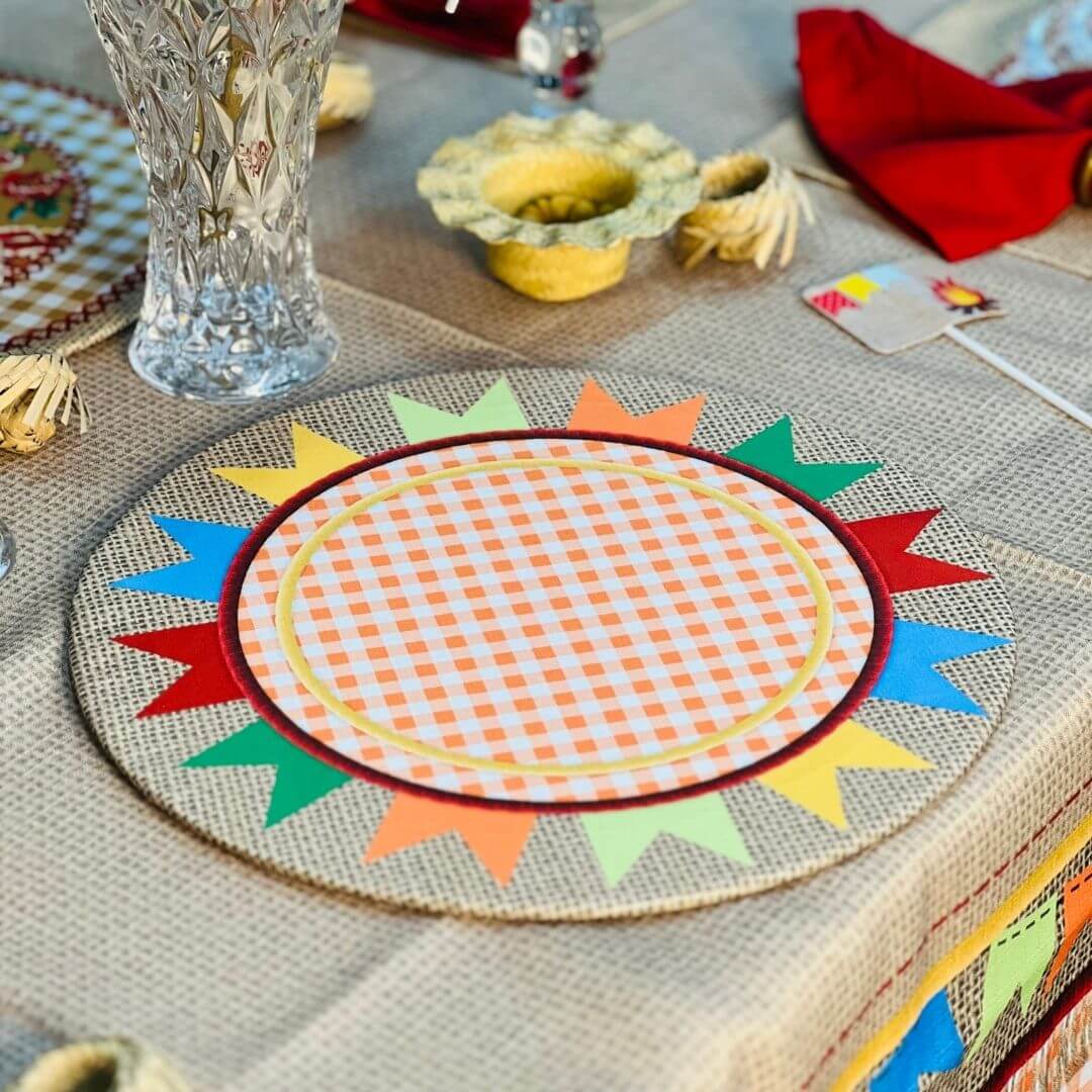 Adicione um toque junino à sua mesa com a Capa Para Sousplat São João. Com estampa temática alegre e vibrante, ela transforma qualquer refeição em um momento especial, perfeito para comemorações típicas ou para levar o clima das festas para o seu dia a dia.