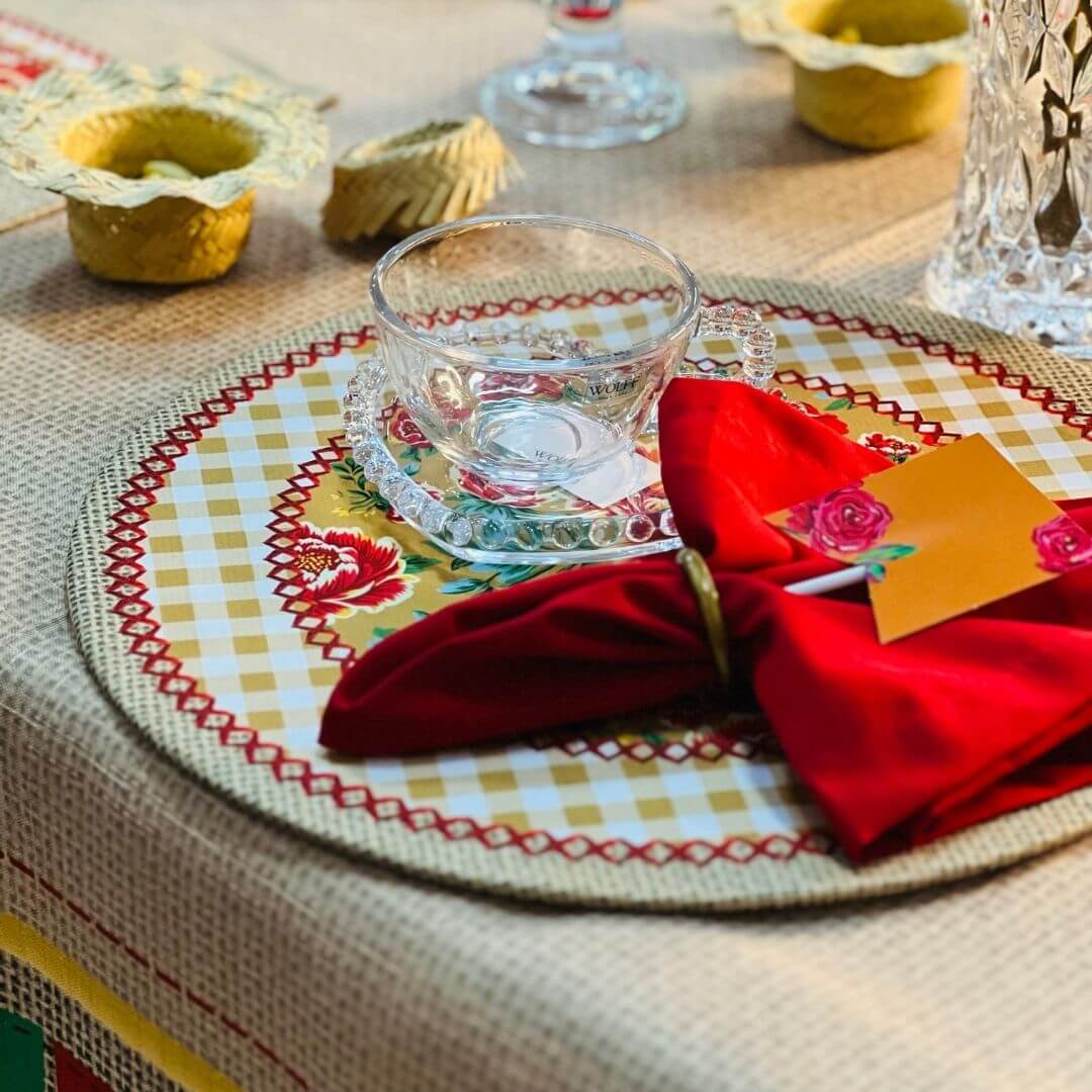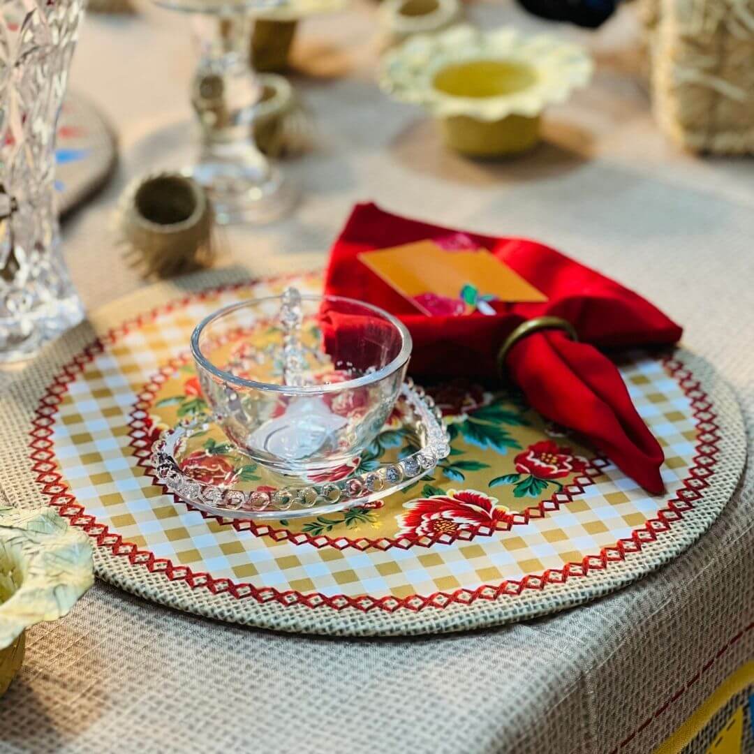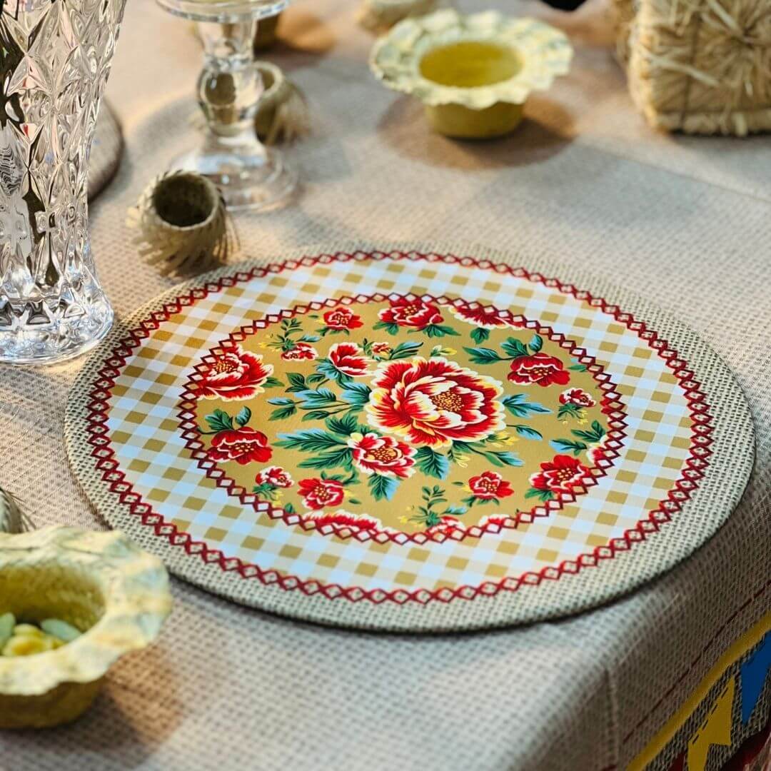 Adicione um toque junino à sua mesa com a Capa Para Sousplat São João. Com estampa temática alegre e vibrante, ela transforma qualquer refeição em um momento especial, perfeito para comemorações típicas ou para levar o clima das festas para o seu dia a dia.