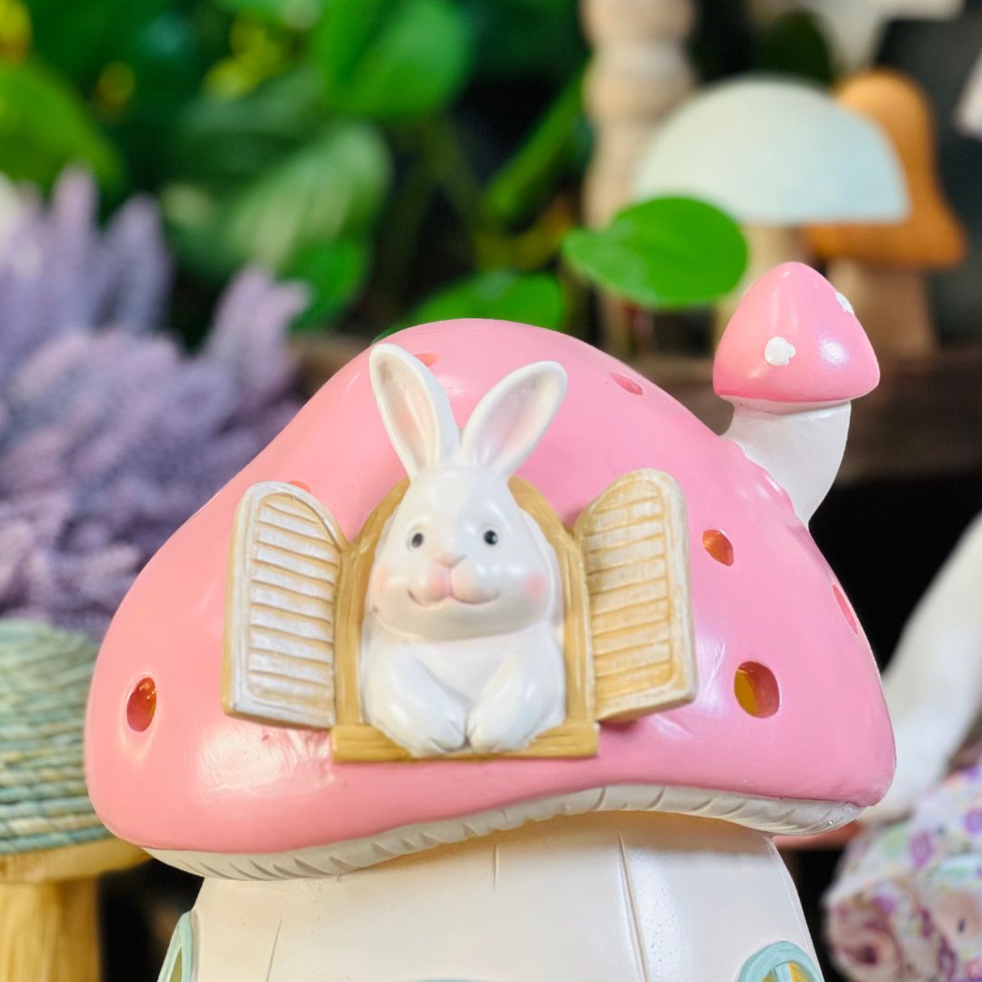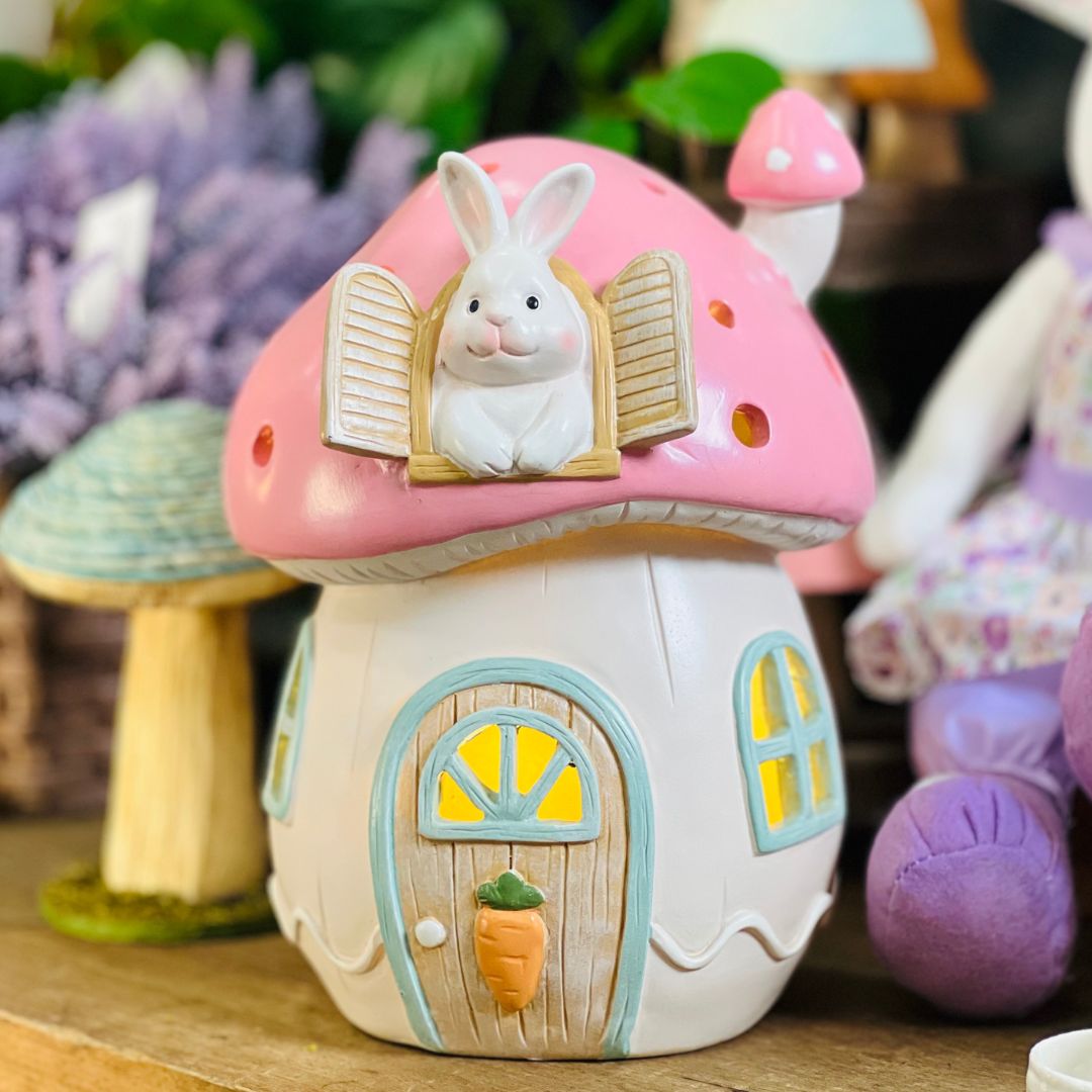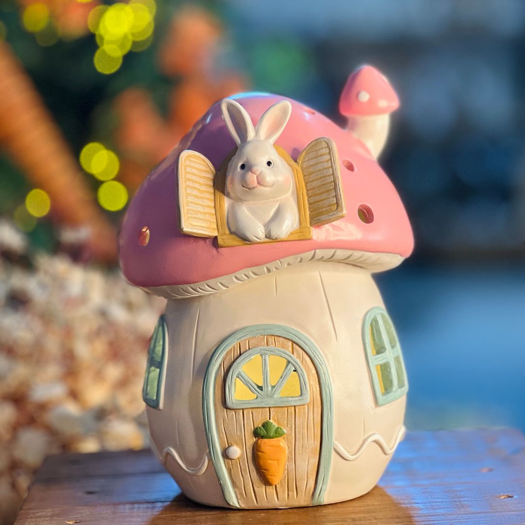 Casa Coelho de Cogumelo Com LED - 29cm