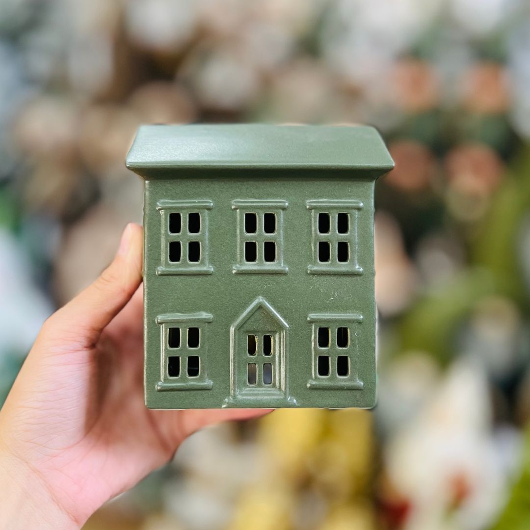 Casa de Cerâmica Verde Com Led - 12x9,5x6cm