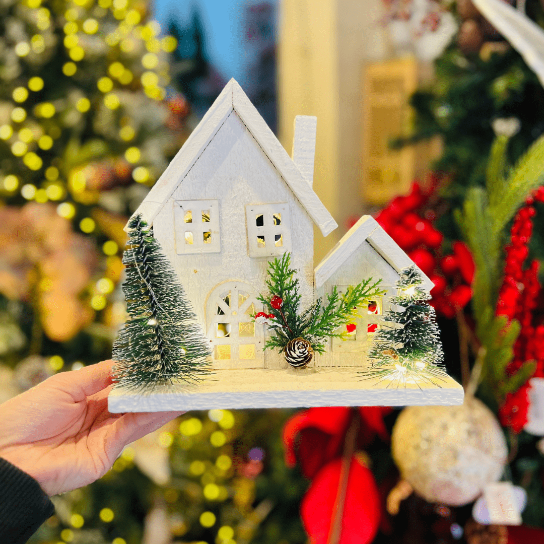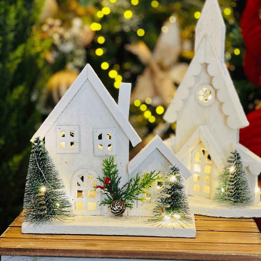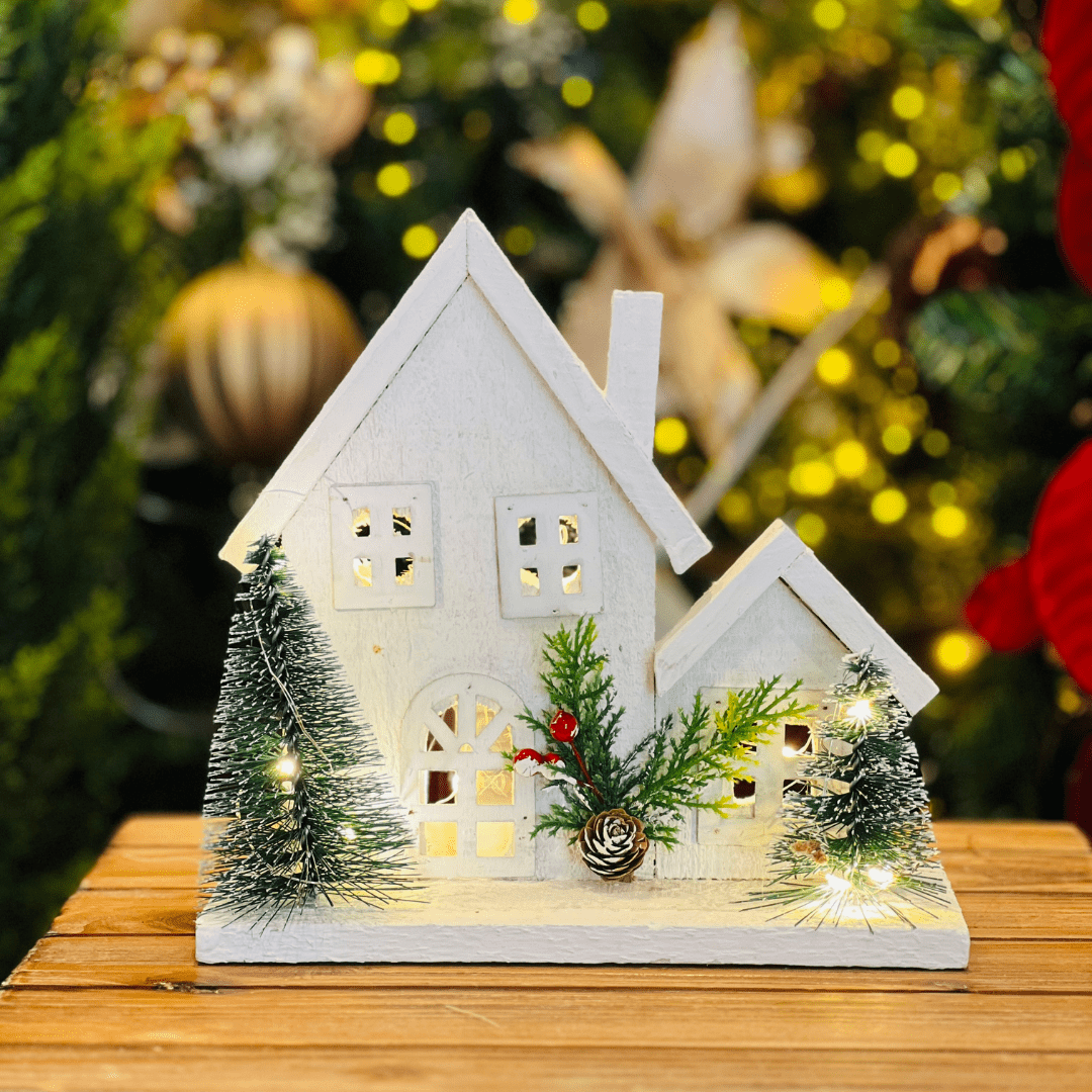 Casa Natalina Branca Com Led de Madeira 21x22x10cm