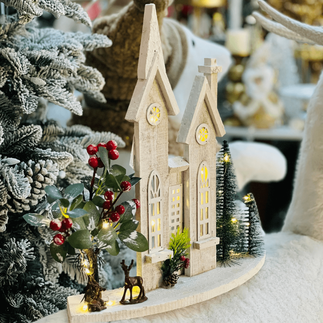 Casa Natalina Branca Com Led de Madeira 43x25cm