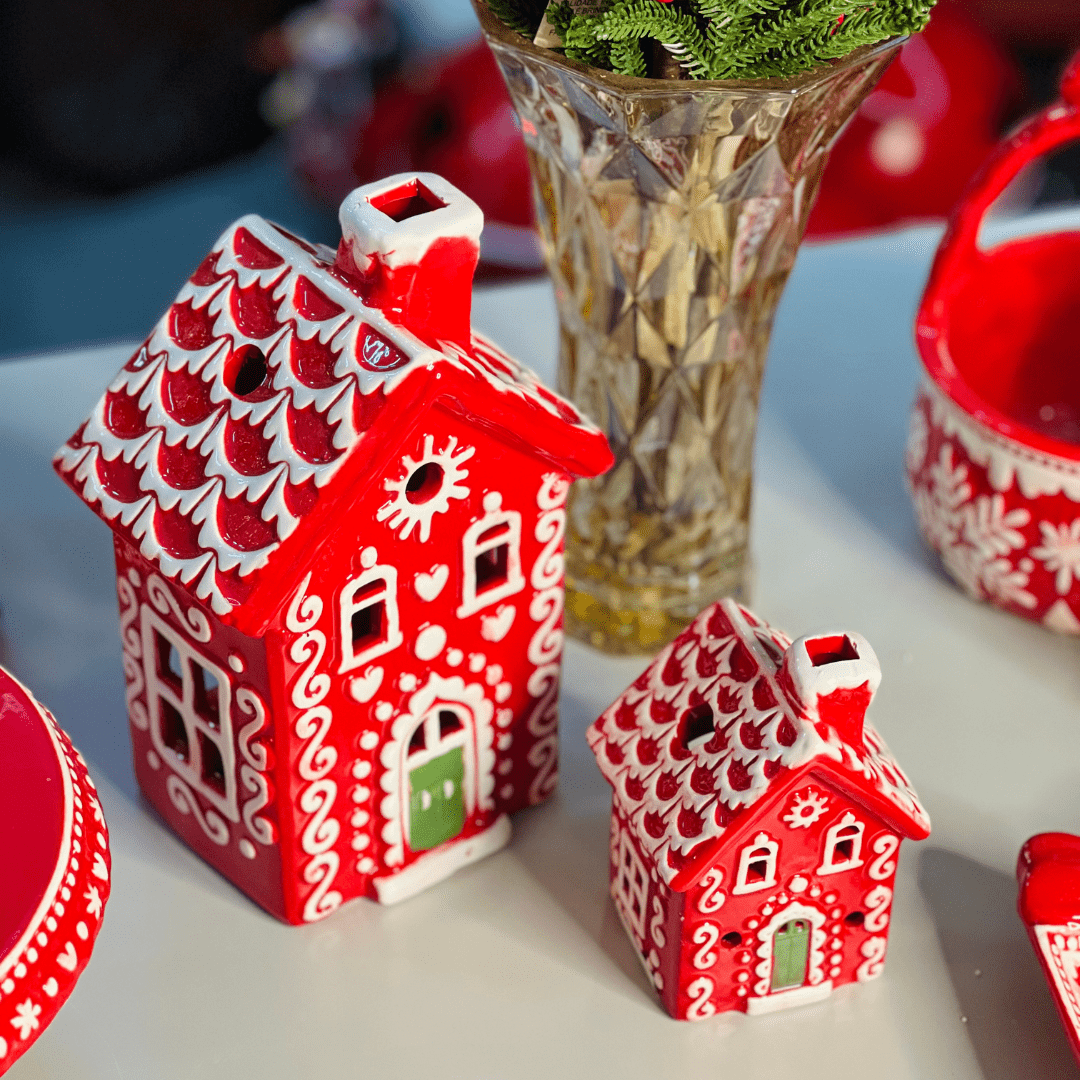 A Casa Natalina Vermelho e Branco de Cerâmica 14x10x22cm é um item decorativo encantador que traz o espírito natalino para o ambiente. Com design detalhado e acabamento nas cores vermelho e branco, é ideal para enfeitar mesas, aparadores ou compor cenários natalinos com charme e delicadeza.