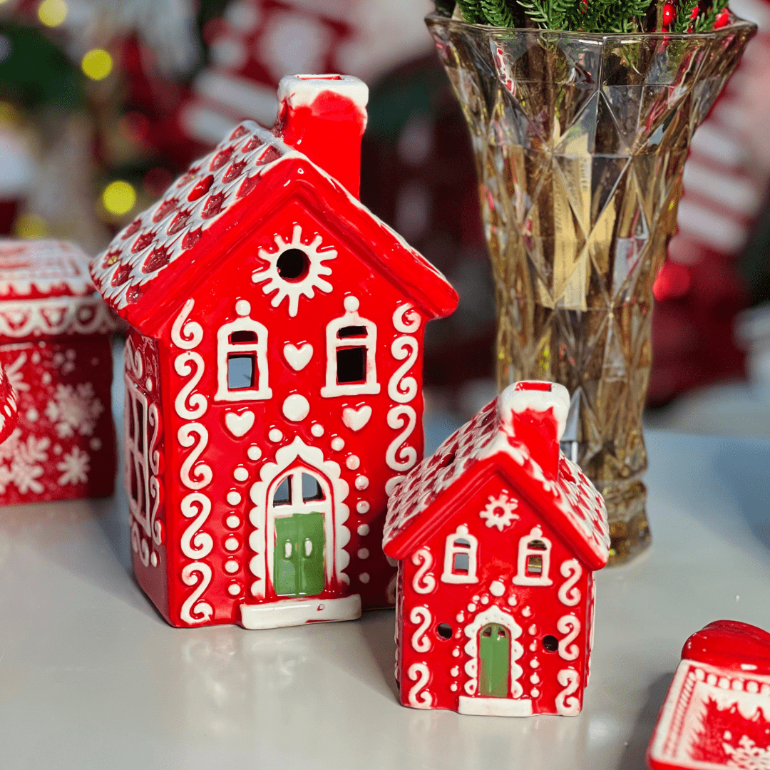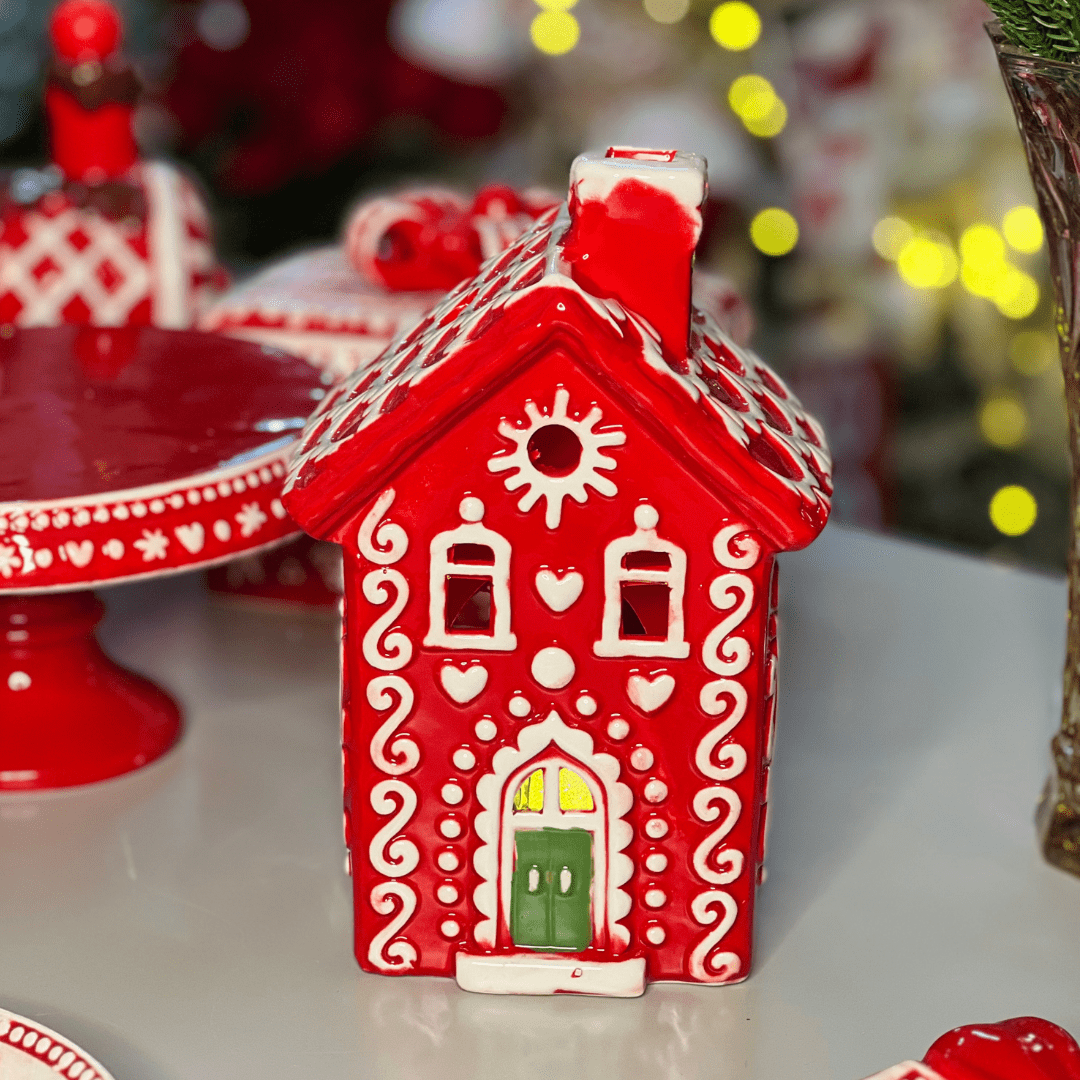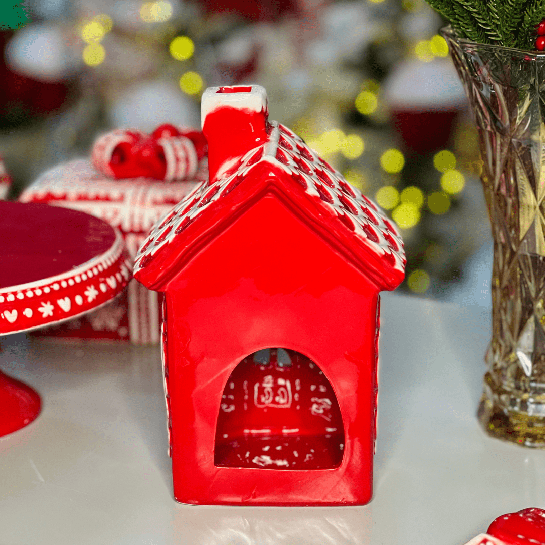 Casa Natalina Vermelho e Branco de Cerâmica 14x10x22cm