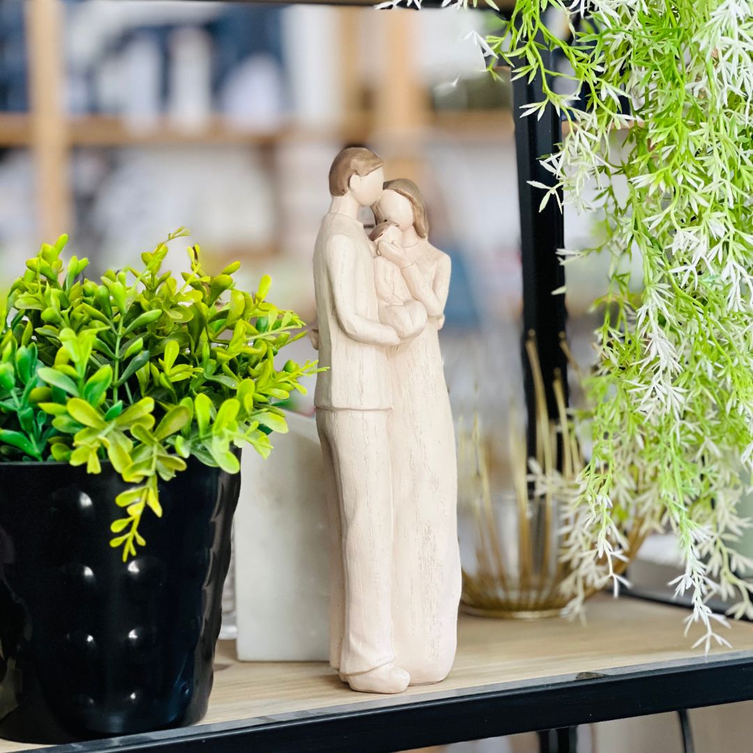 O Enfeite Decorativo Casal Com Bebê simboliza amor e união, trazendo um toque delicado e acolhedor para a decoração. Ideal para ambientes aconchegantes, essa peça expressa carinho e afeto, sendo perfeita para compor estantes, aparadores e mesas.