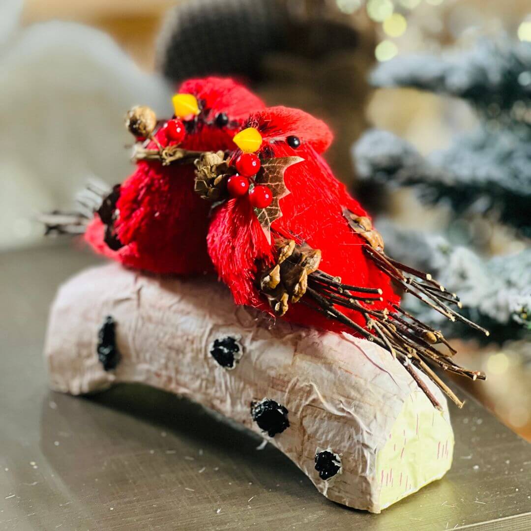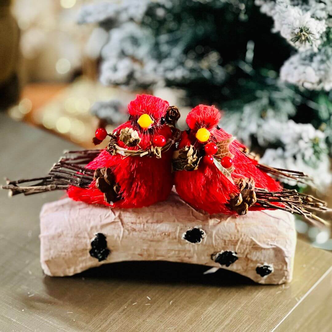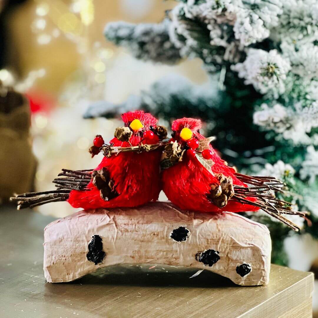 Casal de Pássaros em Vermelho - Natal - 15cm