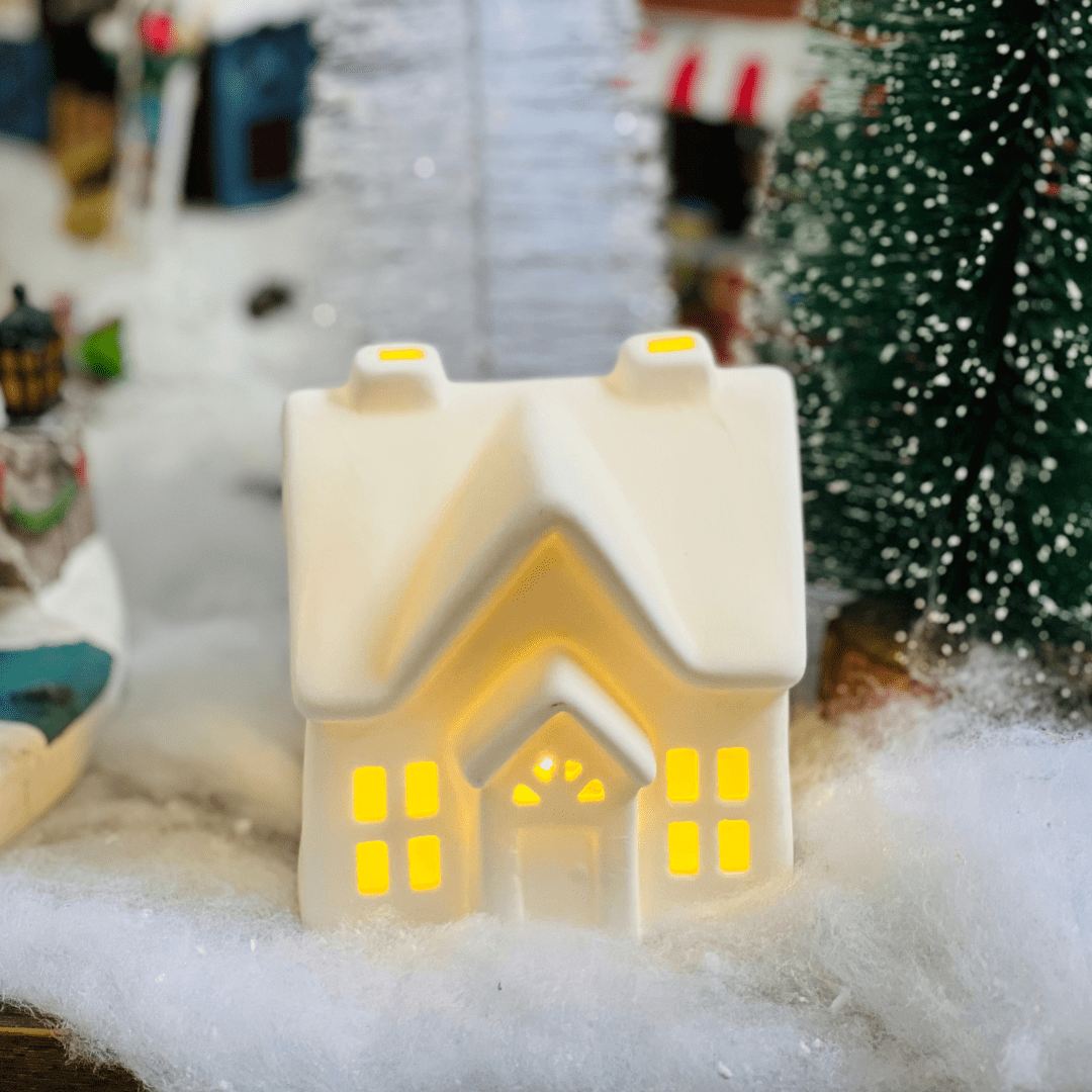A Casinha Branca com LED de Resina, medindo 10x9 cm, é um enfeite delicado e iluminado para a decoração de Natal. Ideal para mesas, aparadores ou prateleiras, ela cria um clima aconchegante e festivo, adicionando charme e luminosidade ao ambiente natalino.